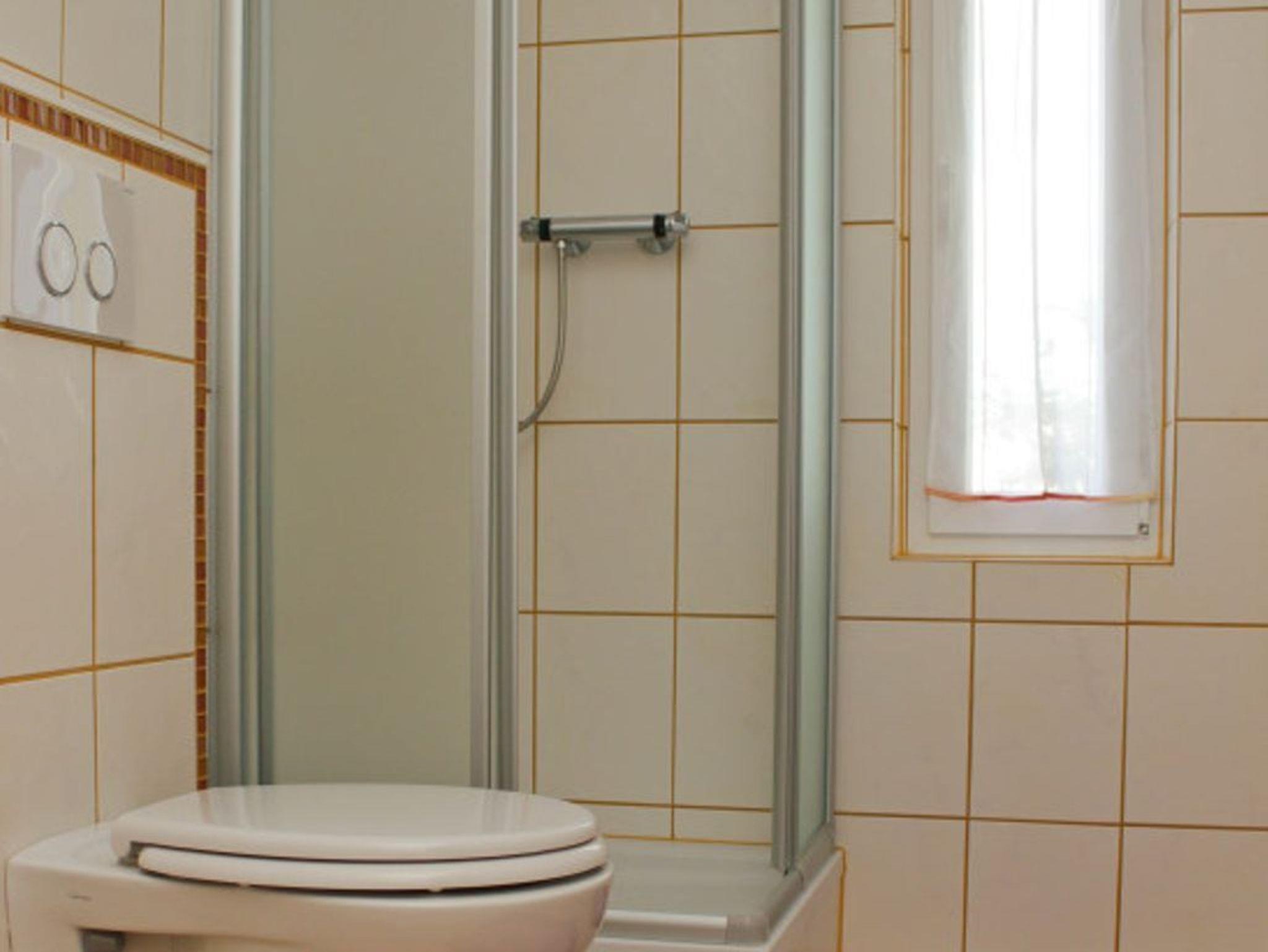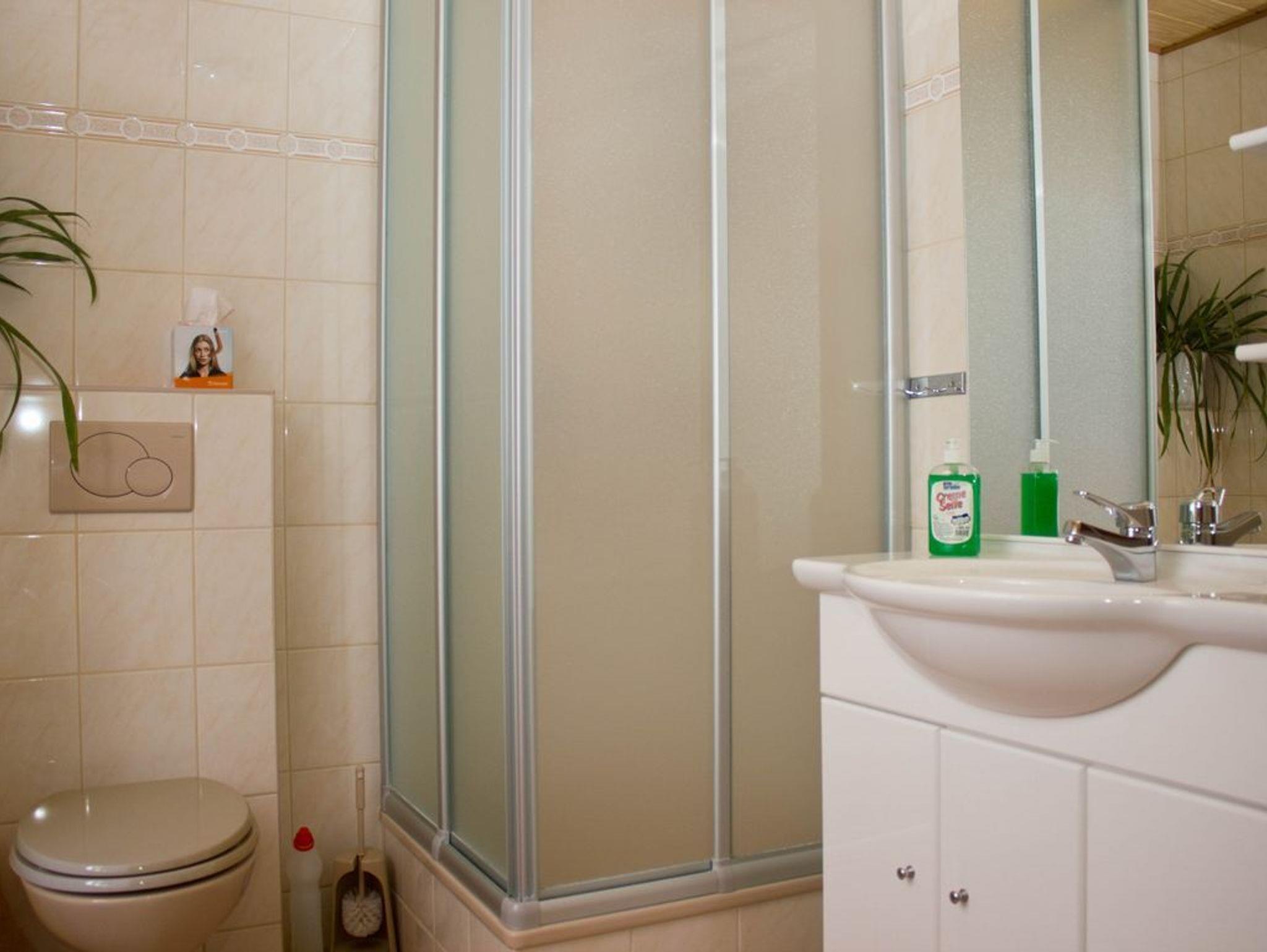 Die 2016 neu gebaute Ferienwohnung liegt in der unteren Etage des Hauses und ist über die vordere Eingangstür zu erreichen. Die Wohnung besteht aus einem Wohn-/Schlafraum, einer Küche, Bad (Dusche/WC) sowie einem Flur. Auf ca. 42 qm können hier gemütlich zwei Personen wohnen. Die geräumige Wohnküche ist ein Erkerzimmer, in dem neben der sehr gut ausgestatteten Küche auch eine Sitzgelegenheit vorhanden ist. Der Wohn-/Schlafbereich ist mit Teppichboden, einer Polstergarnitur mit Sessel, Couch und Tisch gut ausgestattet. Im hinteren Teil des Raumes bildet ein klassisches Doppelbett mit entsprechenden Nachtschränkchen und Beleuchtung den Schlafbereich des Raumes. Im Garten ist Grillen, Tischtennis oder Federballspielen möglich.
