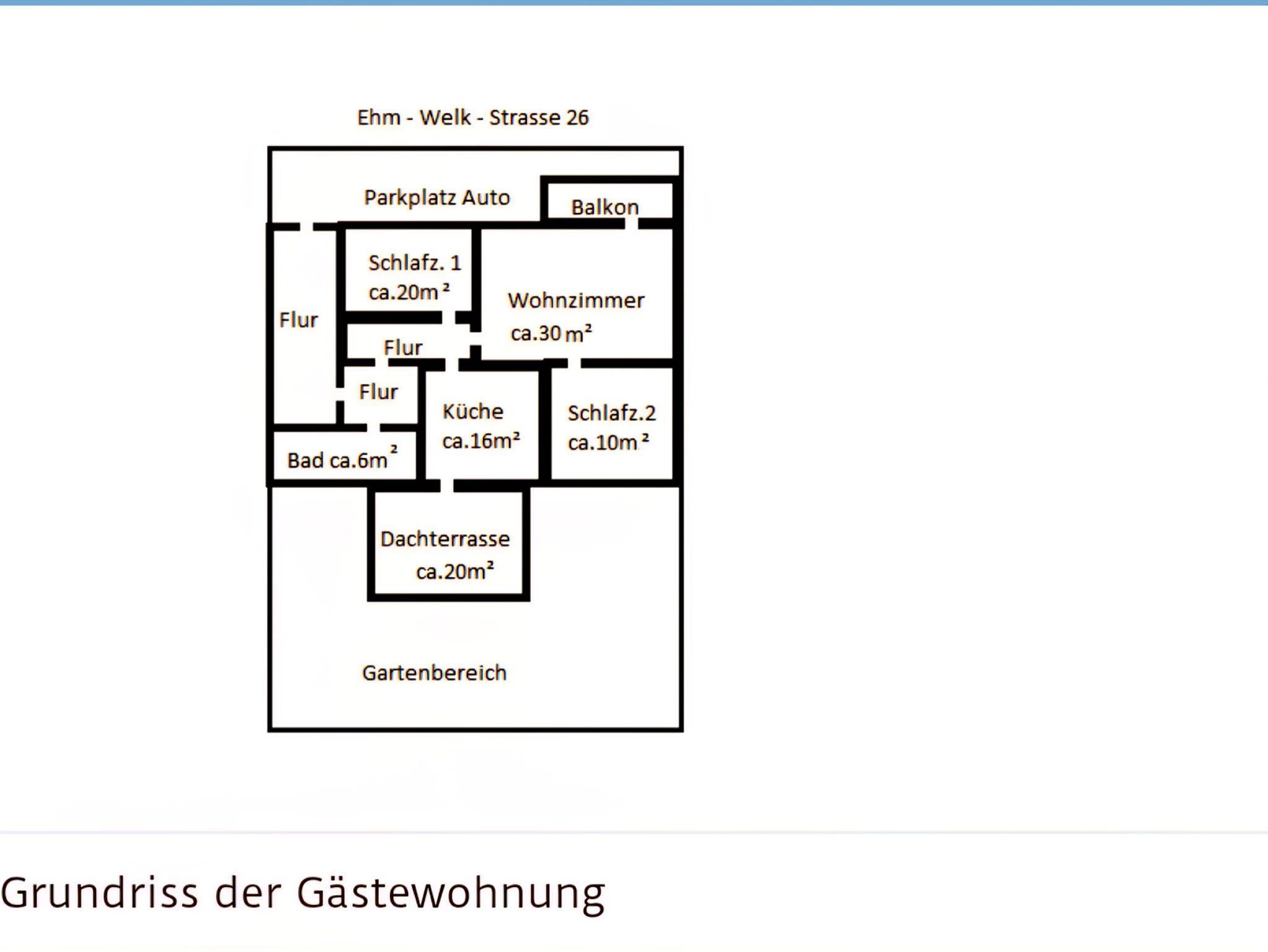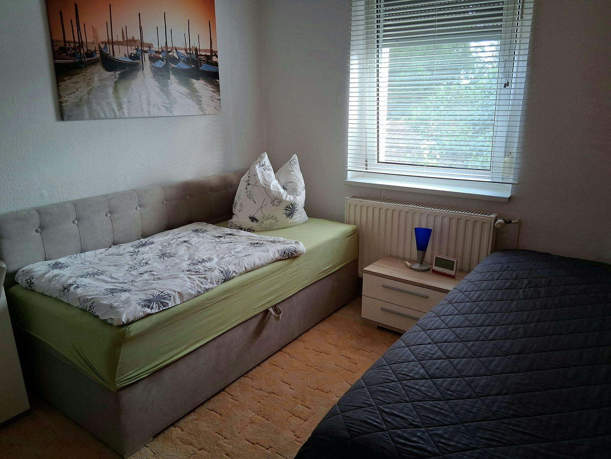 Die Gästewohnung befindet sich in der gesamten ersten Etage eines Zweifamilienhauses, welche über einen geräumigen Treppenaufgang und einem zusätzlich verschließbaren seperaten Eingang zu erreichen ist. Die Ferienwohnung verfügt über 5 Räume (Wohnzimmer, zwei Schlafzimmer, Küche, Bad - siehe Grundriss in der Galerie).