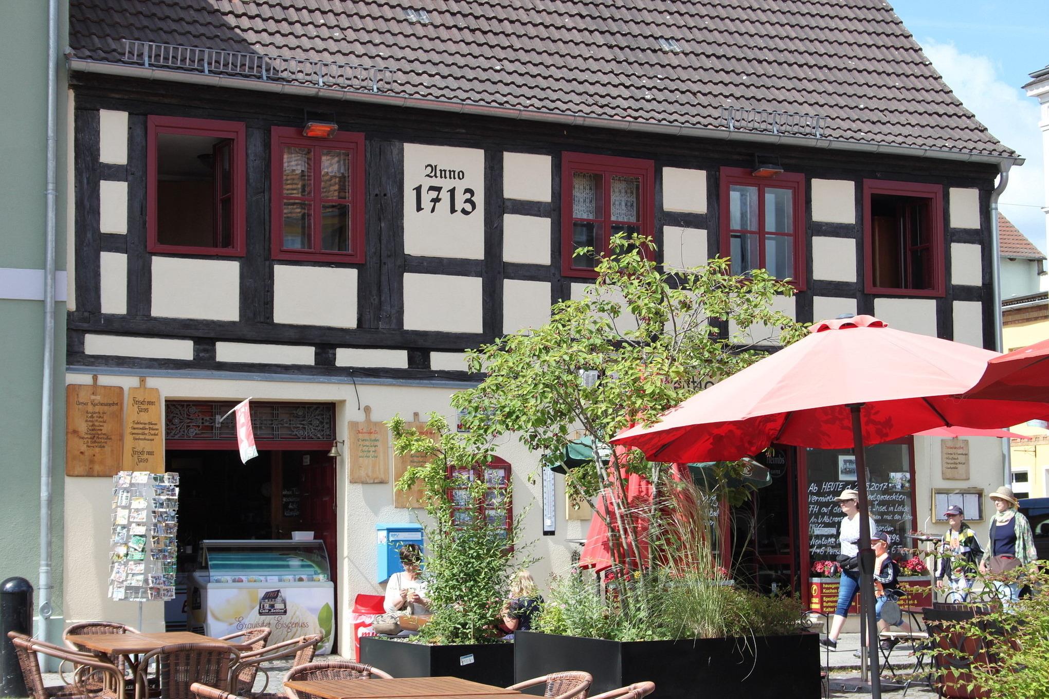 Die Eigentümerfamilie betreibt in diesem Haus ein Café.