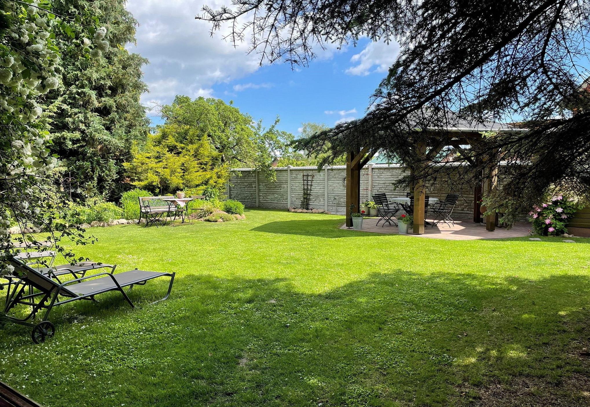 Die Ferienwohnung Rosentraum befindet sich in der oberen Etage des Hinterhauses. Sie haben direkten Zugang zum Garten, welcher liebevoll mit kleinen Sitzecken zum Verweilen ausgestattet ist.