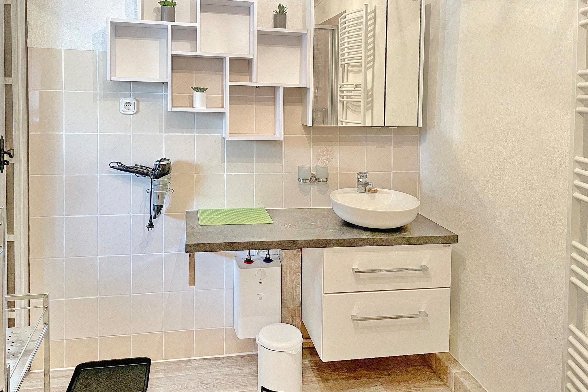Das Zimmer ist mit einem Kühlschrank, Gefrierfach, Wasserkocher und Mikrowelle ausgestattet. Am kleinen Esstisch können tägliche Mahlzeiten eingenommen werden, so wie Brotmahlzeiten oder ähnlich schnell zubereitete Gerichte. Der Kleiderschrank bietet ausreichend Stauraum für Kleidung, auch für längere Aufenthalte.