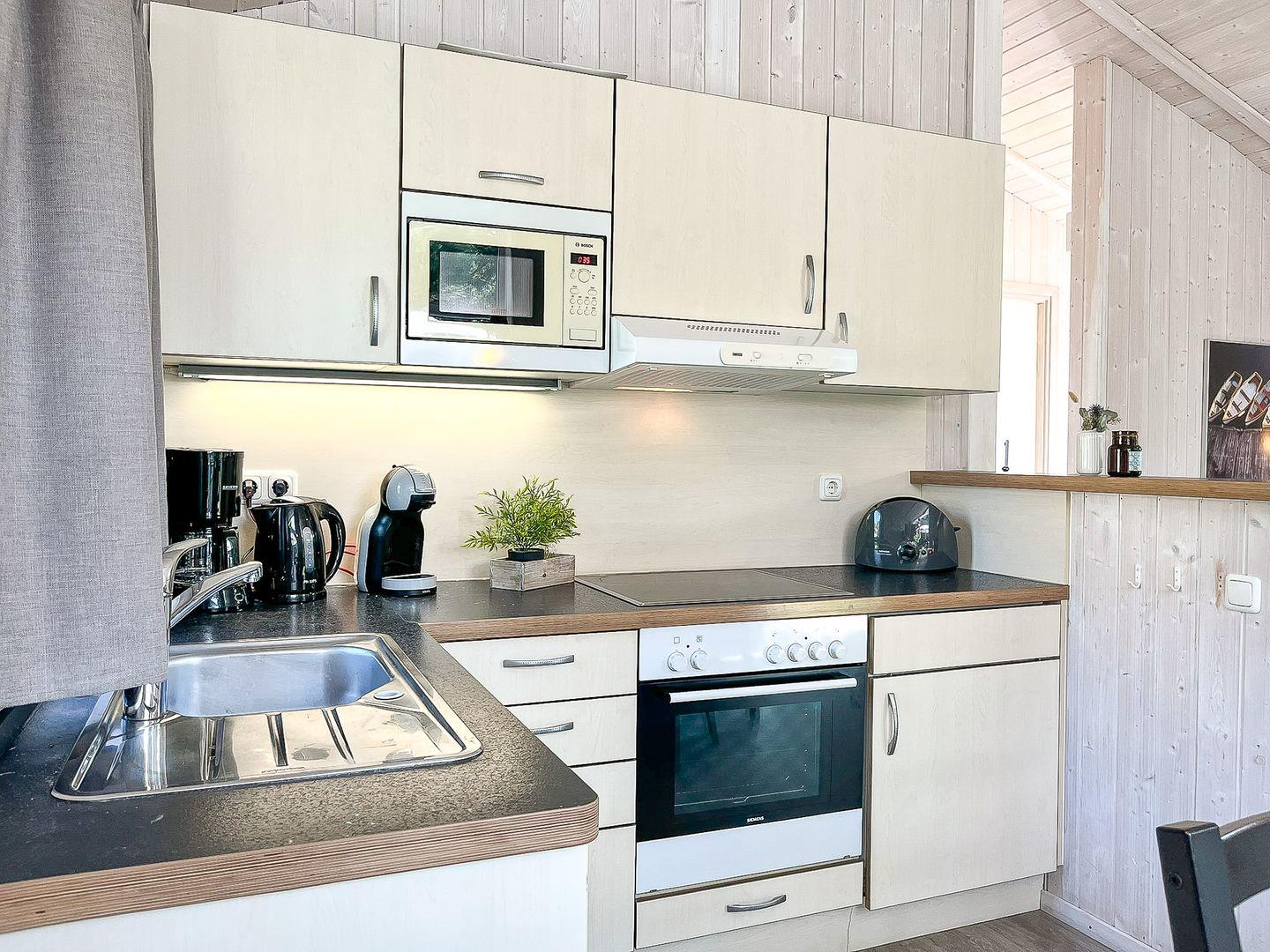 Die Küche ist offen zum Wohnraum gestaltet und bietet alles für die Selbstversorgung: