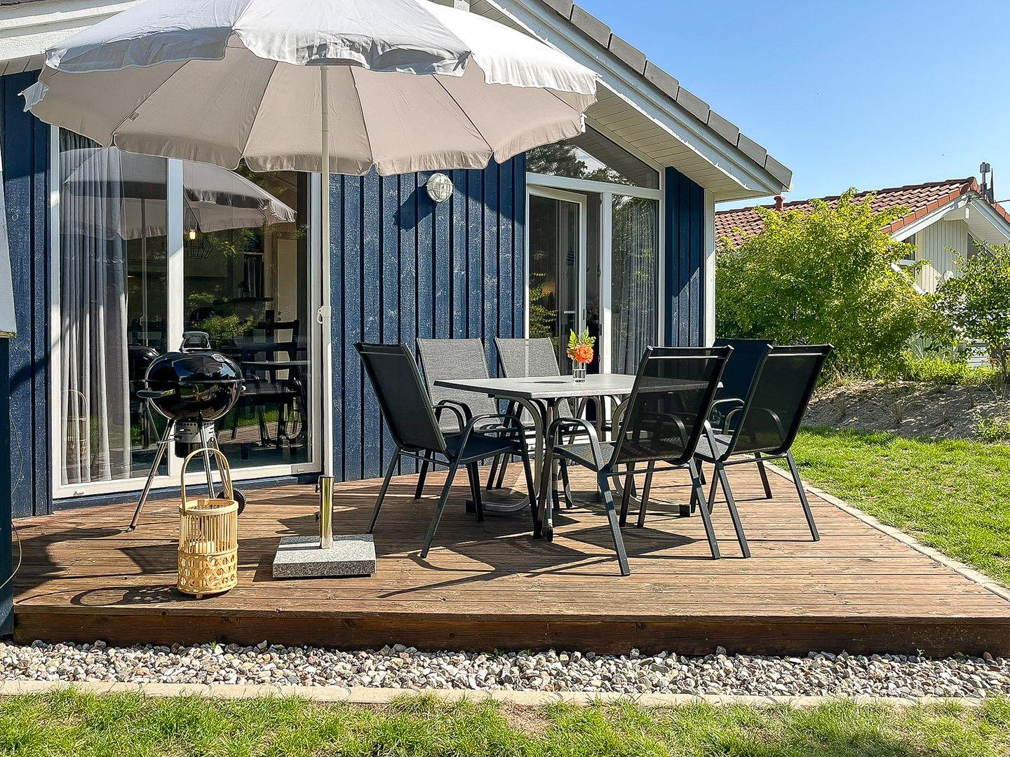 Die möblierte Terrasse mit Gartenblick lädt zum Entspannen ein. Sonnenliegen und Sonnenschirm machen den Außenbereich besonders gemütlich, und beim gemeinsamen Grillabend auf dem Holzkohlegrill kommt Urlaubsstimmung auf.