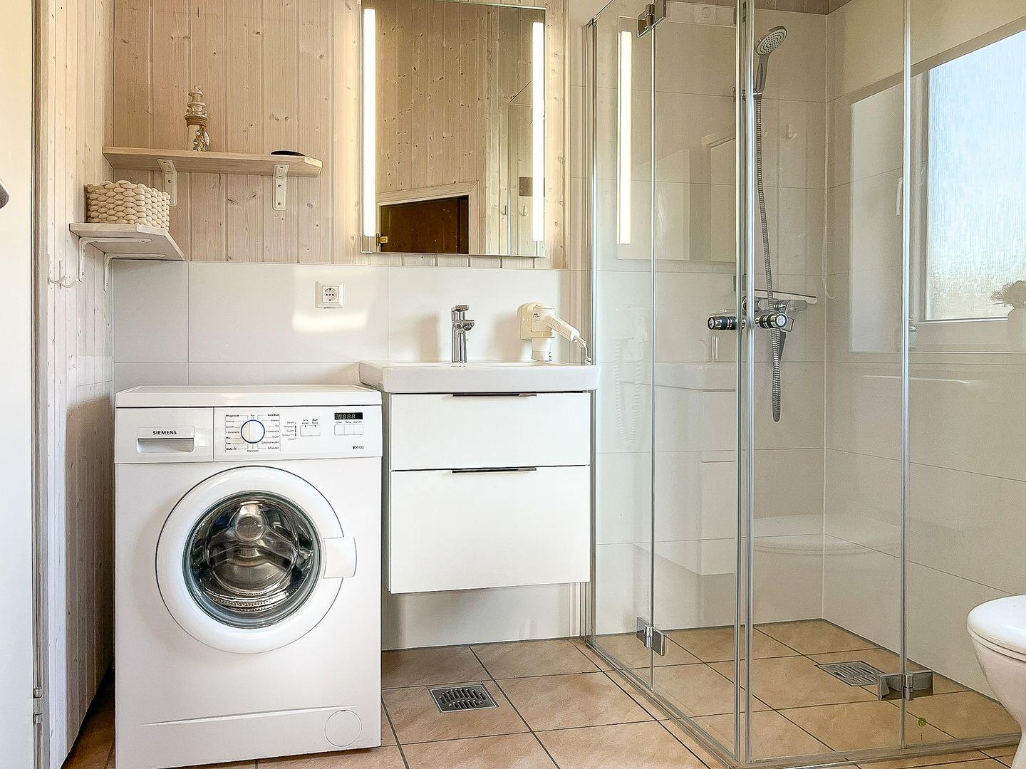Im Badezimmer findest Du eine bodengleiche Dusche, WC, Waschbecken sowie einen Haartrockner. Auch die Waschmaschine kannst Du hier bequem nutzen. Für die kleinen Gäste ist ein Toilettenaufsatz vorhanden.