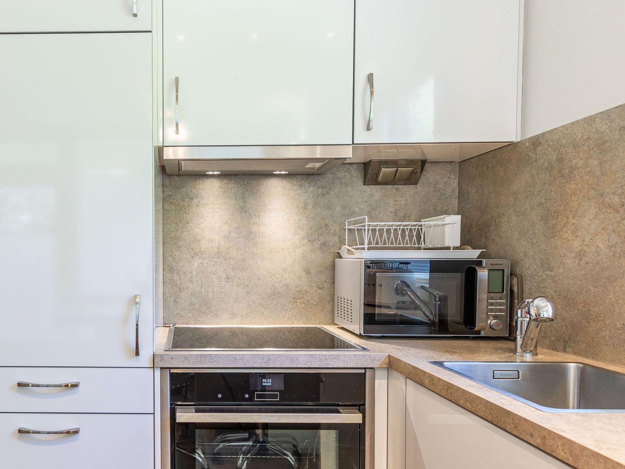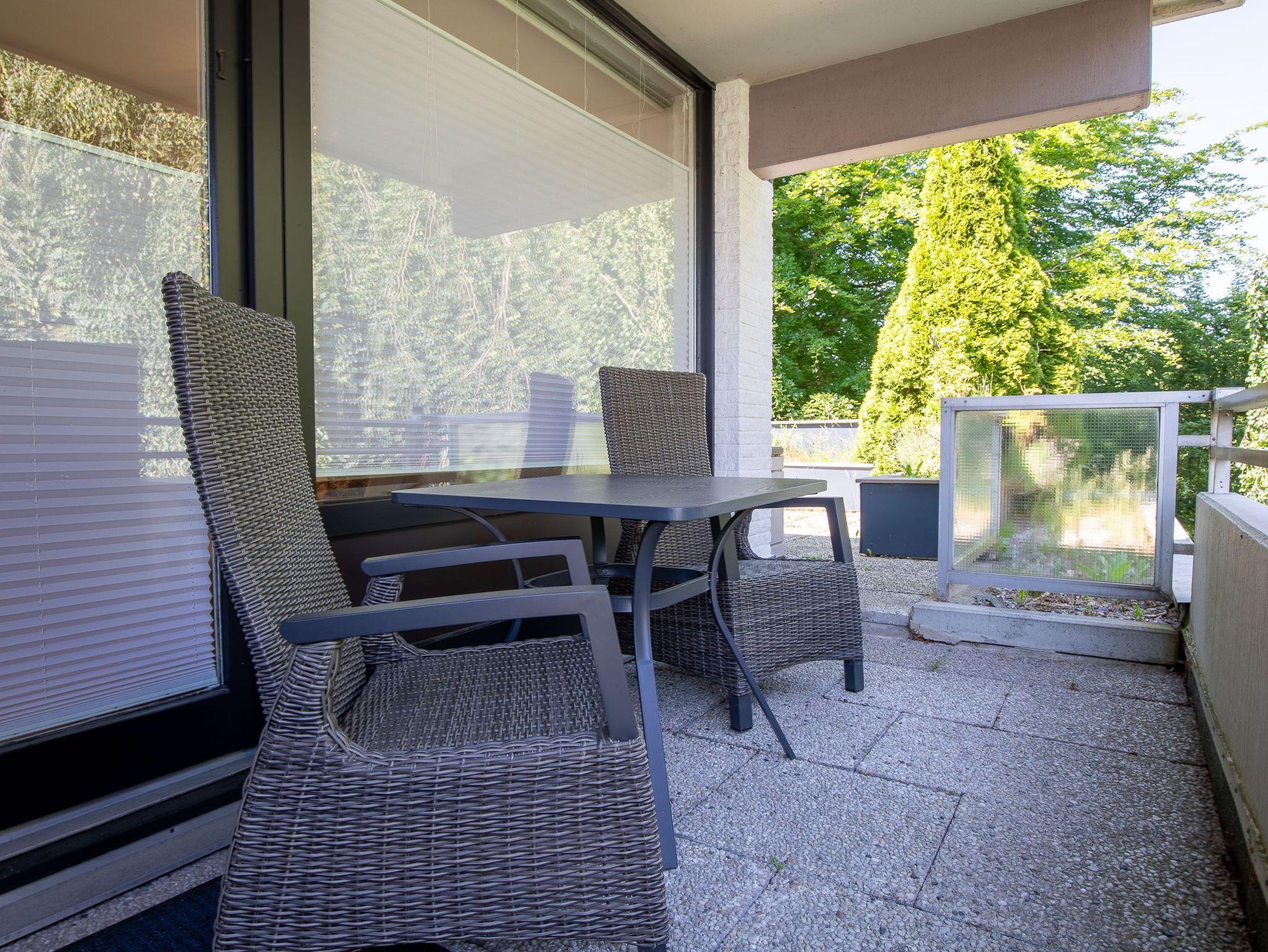 Terrasse, Markise, Küche, Mikrowelle, Duschbad, separates WC, Fön, (Waschmaschine und Trockner im Haus), TV, kostenl. W-Lan, Aufzug, inkl. Tiefgaragenstellplatz (Einfahrtshöhe: 1,90 m).