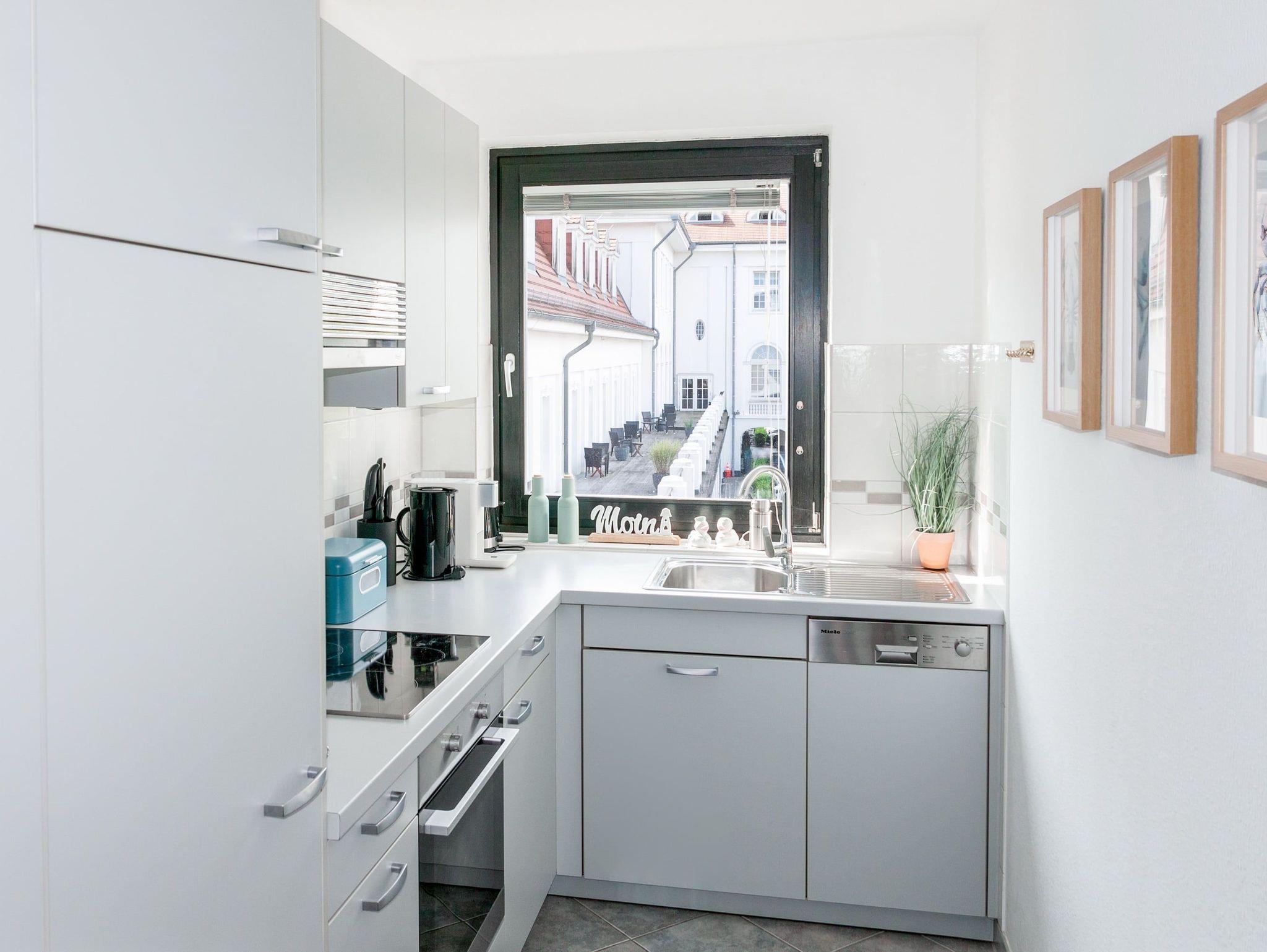 Zwei Balkone, Küche, Geschirrspüler, Duschbad/WC, Fön, (Waschmaschine und Trockner im Haus), TV, Stereoradio mit CD, kostenl. W-Lan, Aufzug, inkl. Tiefgaragenstellplatz (Einfahrtshöhe: 1,85 m).