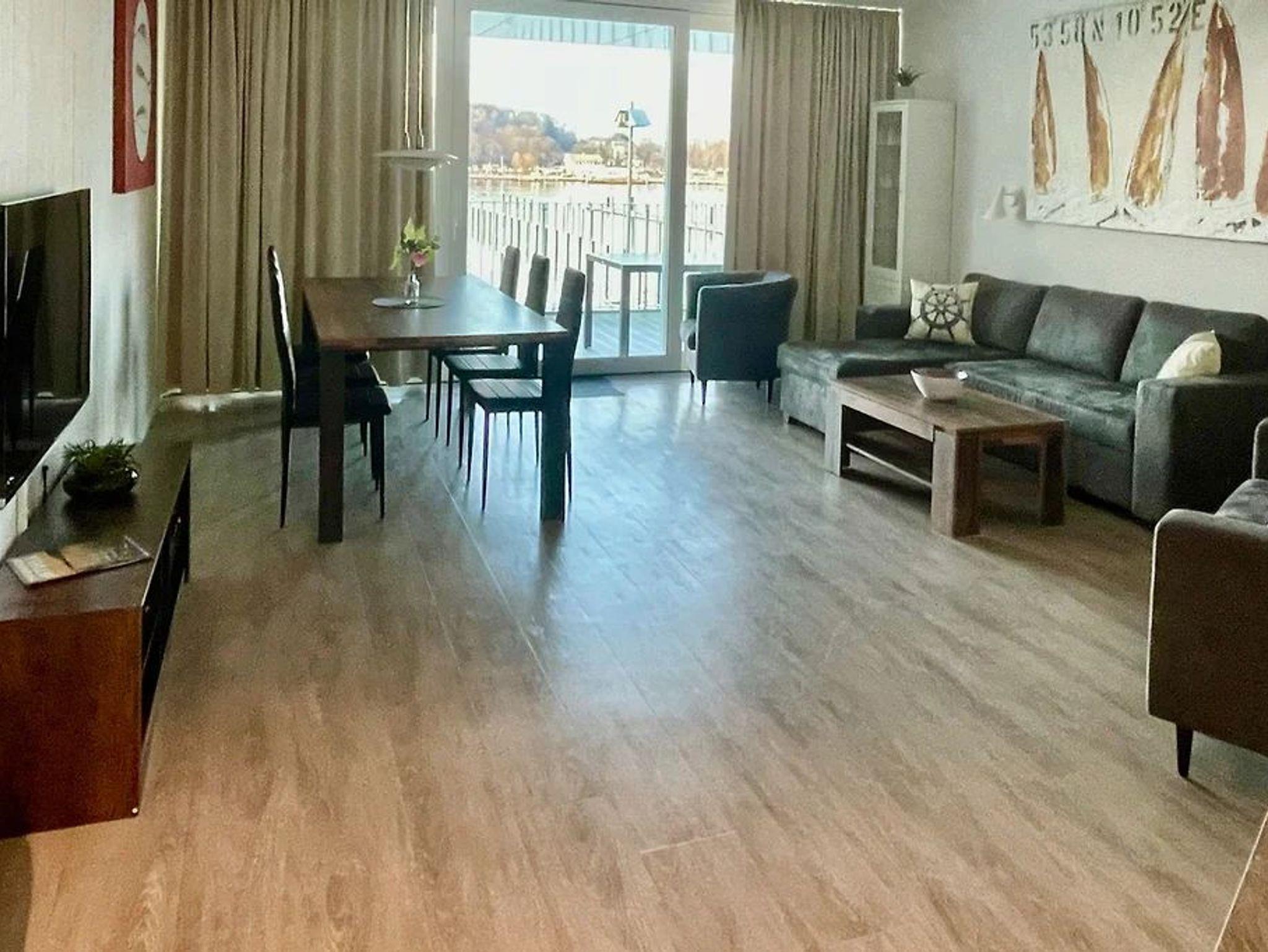 Die Wohnung wurde 2025 renoviert und neu möbliert. Ein besonderes Highlight ist ihr persönlicher Wellnessbereich mit Sauna, Whirlpool und Dampfbad mit integrierter Doppel-Regendusche. Im Wohnbereich sorgen am Abend die Flammen des Bioethanolkamins für eine gemütliche Atmosphäre, ebenso wie die vorbeifahrenden großen Schiffe mit ihrer eindrucksvollen nächtlichen Beleuchtung.