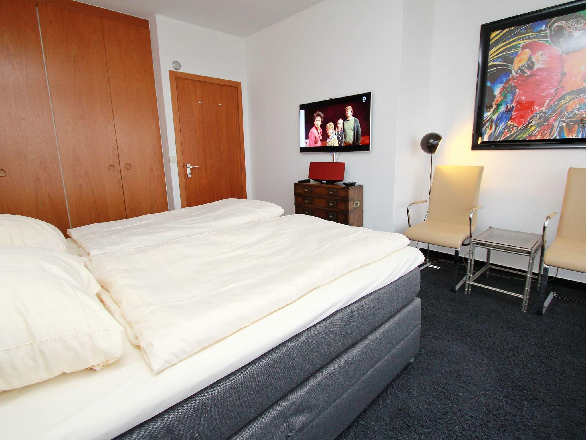 Balkon, Küche, Geschirrspüler, Mikrowelle, Duschbad/WC, Fön, 2x TV, DVD, Stereoradio mit CD, kostenl. W-Lan, Aufzug, inkl. Tiefgaragenstellplatz (Einfahrtshöhe: 1,85 m).