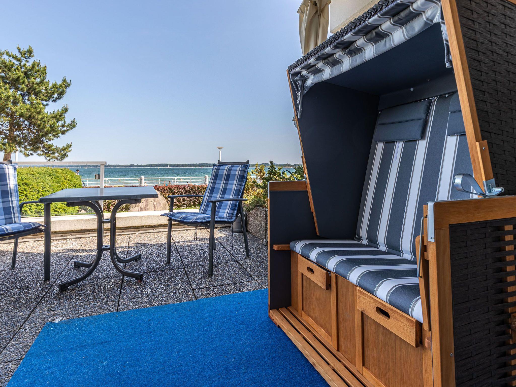 Terrasse mit Strandkorb, Küche, Duschbad/WC, Fön, TV, inkl. Tiefgaragenstellplatz direkt im Haus.