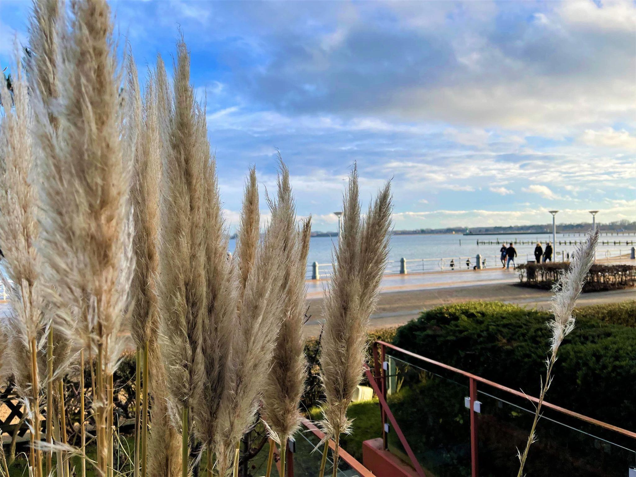 Das Meer hören und sehen: Dieses Appartement besticht mit seiner Lage, in erster Reihe direkt an der Strandpromenade und mit herrlichem Meerblick. Von der Essecke-an der großen Fensterfront-genießen Sie schon morgens beim Frühstücken den herrlichen Blick auf den Strand und die Ostsee. Erleben Sie das großartige Panorama der Lübecker-Bucht, direkt von Ihrer Terrasse vis-à-vis der Strandpromenade. Die große See-Terrasse ist mit einem Strandkorb, gemütlichen Liegen und einer Sitzgruppe ausgestattet. Der Travemünder-Sandstrand ist nur einen Steinwurf entfernt. Ihr Appartement verfügt über ein modernes Duschbad, eine voll ausgestattete Küchenzeile, ein separates Schlafzimmer mit zwei Einzelbetten sowie ein Schrankbett im Wohnbereich. Im Wohnzimmer finden Sie eine bequeme Ledercouch sowie die Essecke an der Fensterfront vor. Vom Wohnbereich gelangen Sie ebenfalls auf die große Panorama-Terrasse. Die Fenster im Wohnbereich können alle durch elektrische-Rollladen verschlossen werden. Genießen Sie Ihren Urlaub in Erster Reihe!