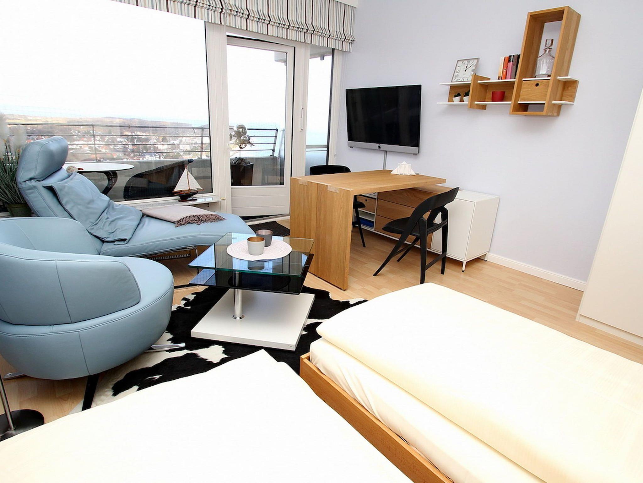 Sie wollen ausspannen und sich vom Alltag erholen? Dieses strandnah gelegene Appartement lädt zum Wohlfühlen und Entspannen fern des Alltags ein. Hier können Sie aus nächster Nähe das Strandleben genießen und das beschauliche Spiel der Segelboote im Wind beobachten. Der liebevoll und modern eingerichtete Wohnraum besteht aus einem gemütlichen Relaxsessel, einem Sessel mit einem Couchtisch und einem Doppelschrankbett (2x 90 cm x 190 cm). Des Weiteren wird die Einrichtung durch eine praktische Anrichte, die in einen Esstisch wandelbar ist, sowie einen Kleiderschrank. Die Küchenzeile ist im Eingangsbereich integriert, von dem Sie auch das Bad erreichen. Vom Balkon genießen Sie einen traumhaften Ausblick auf die Ostsee, die Strandpromenade und die Lübecker Bucht.