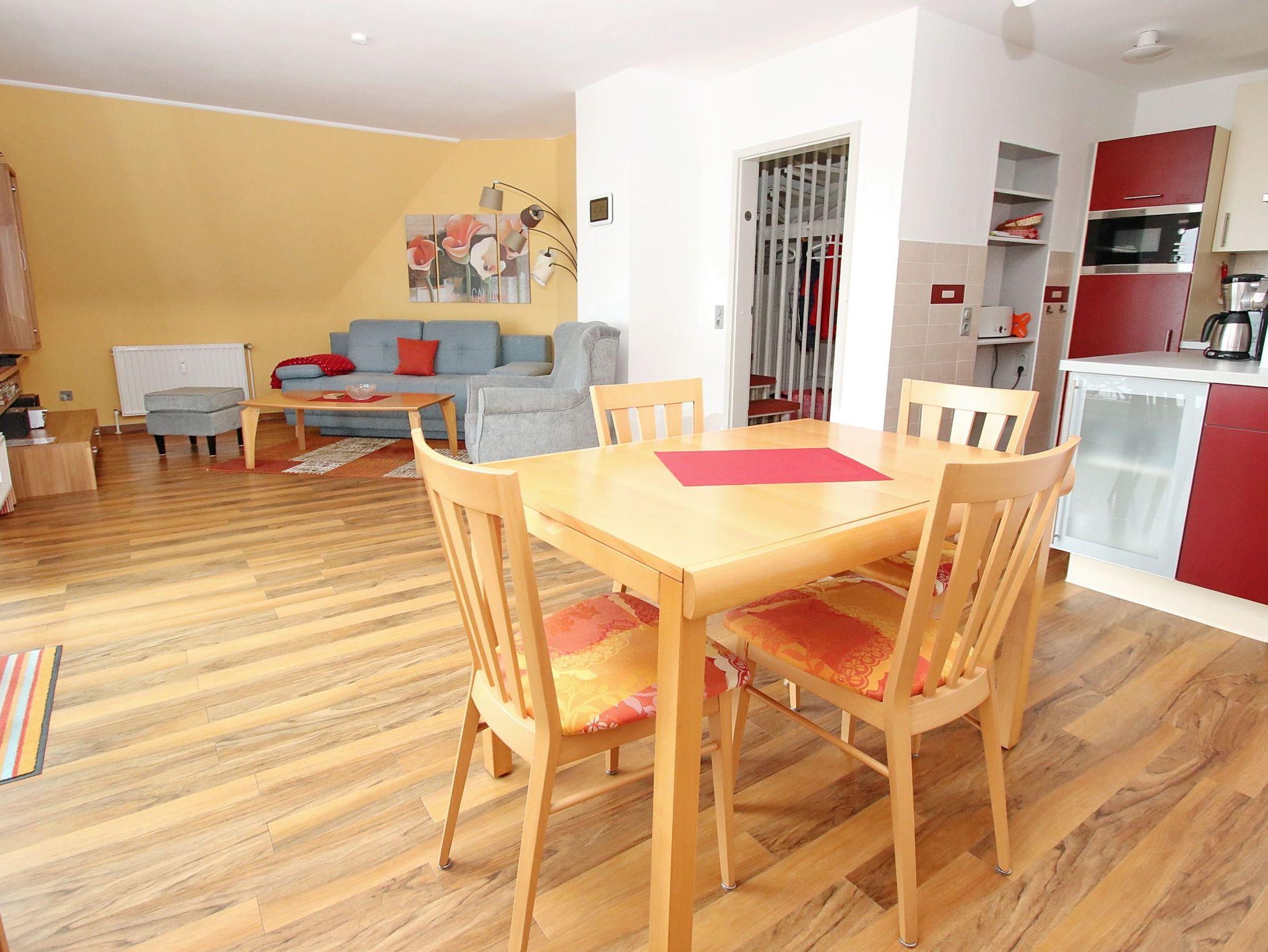 Balkon mit Strandkorb, Küche, Geschirrspüler, Mikrowelle, Duschbad/WC, Fön, 2x TV, DVD, Stereoanlage, kostenl. W-Lan, inkl. Außenstellplatz ca. 300 m vom Haus entfernt.