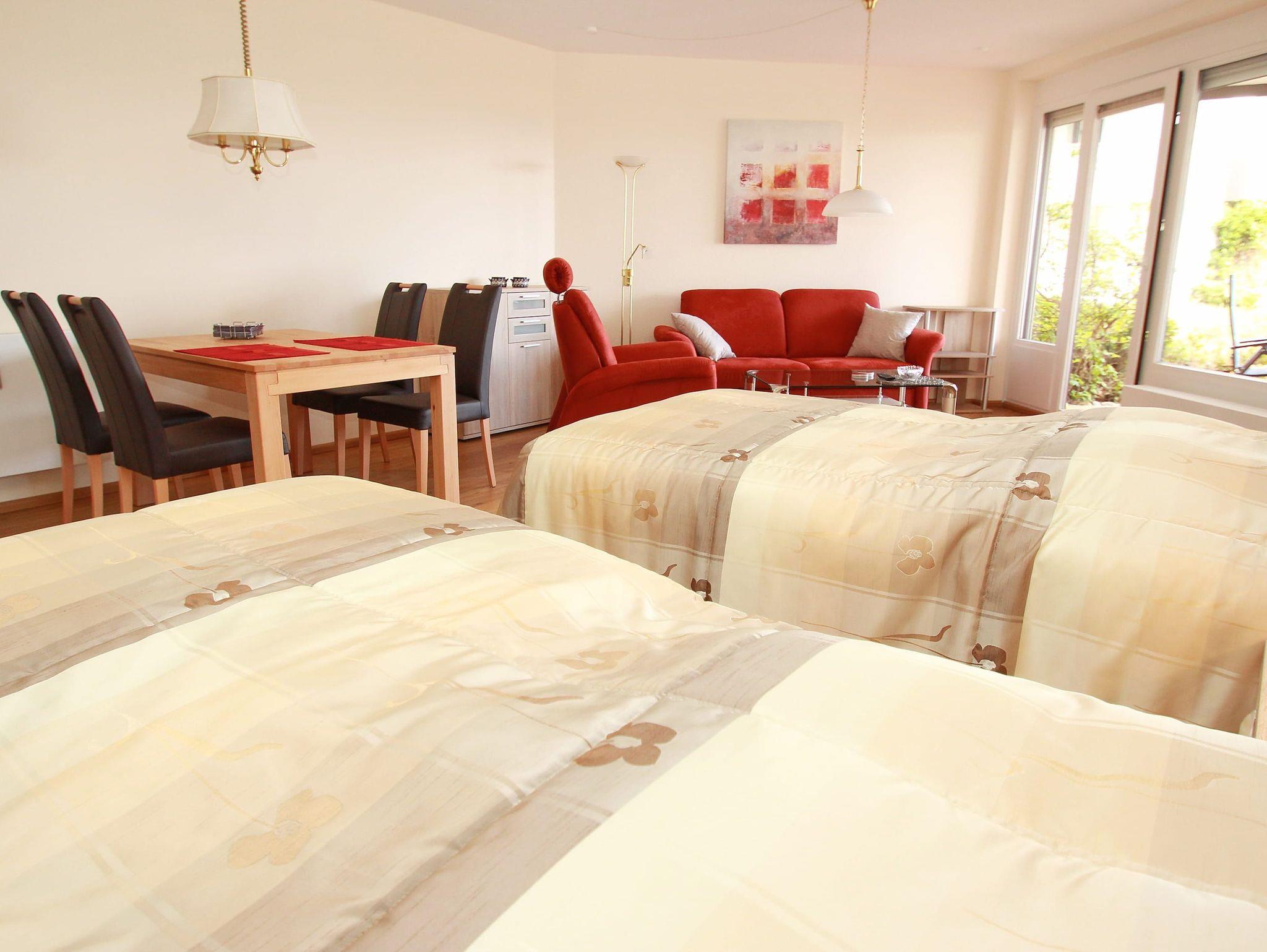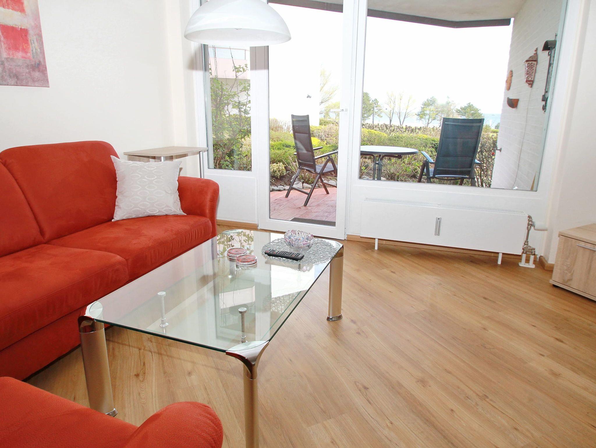 1-Zimmer-Appartement, Hochparterre, ca. 47 m² mit Meerblick.