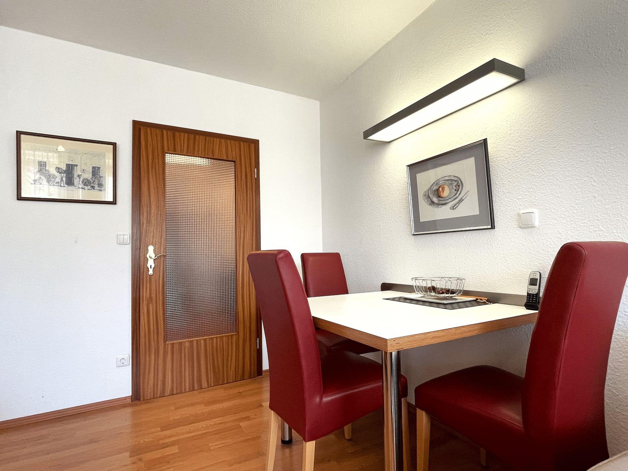 1-Zimmer-Ferienwohnung, 1. OG, ca. 36 m² mit sonnigem Westbalkon.