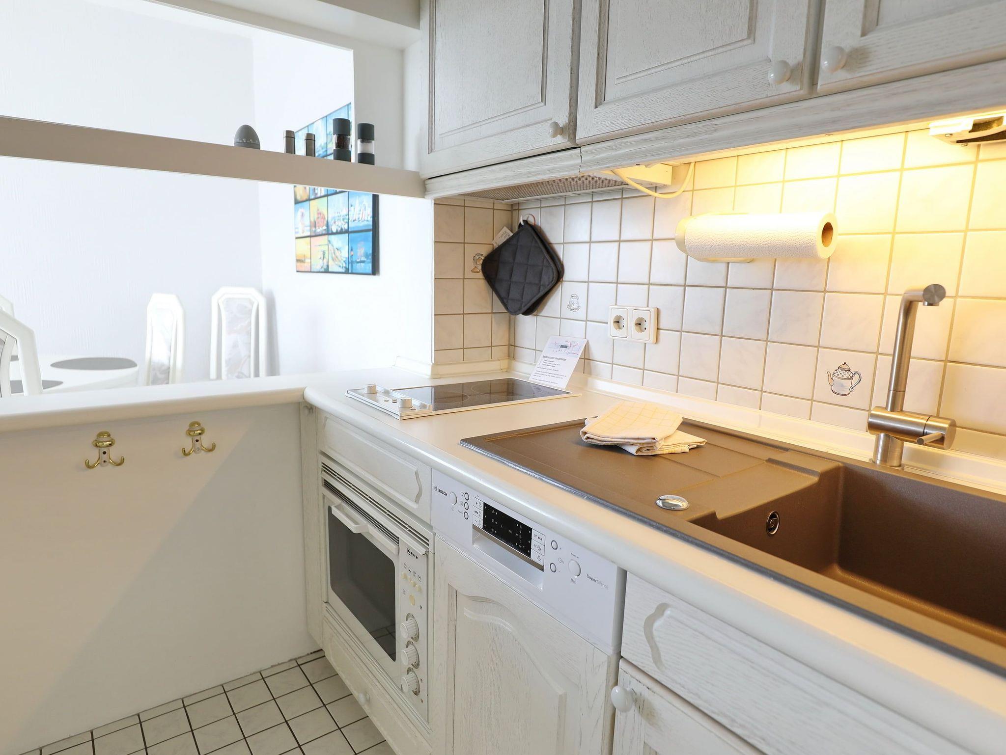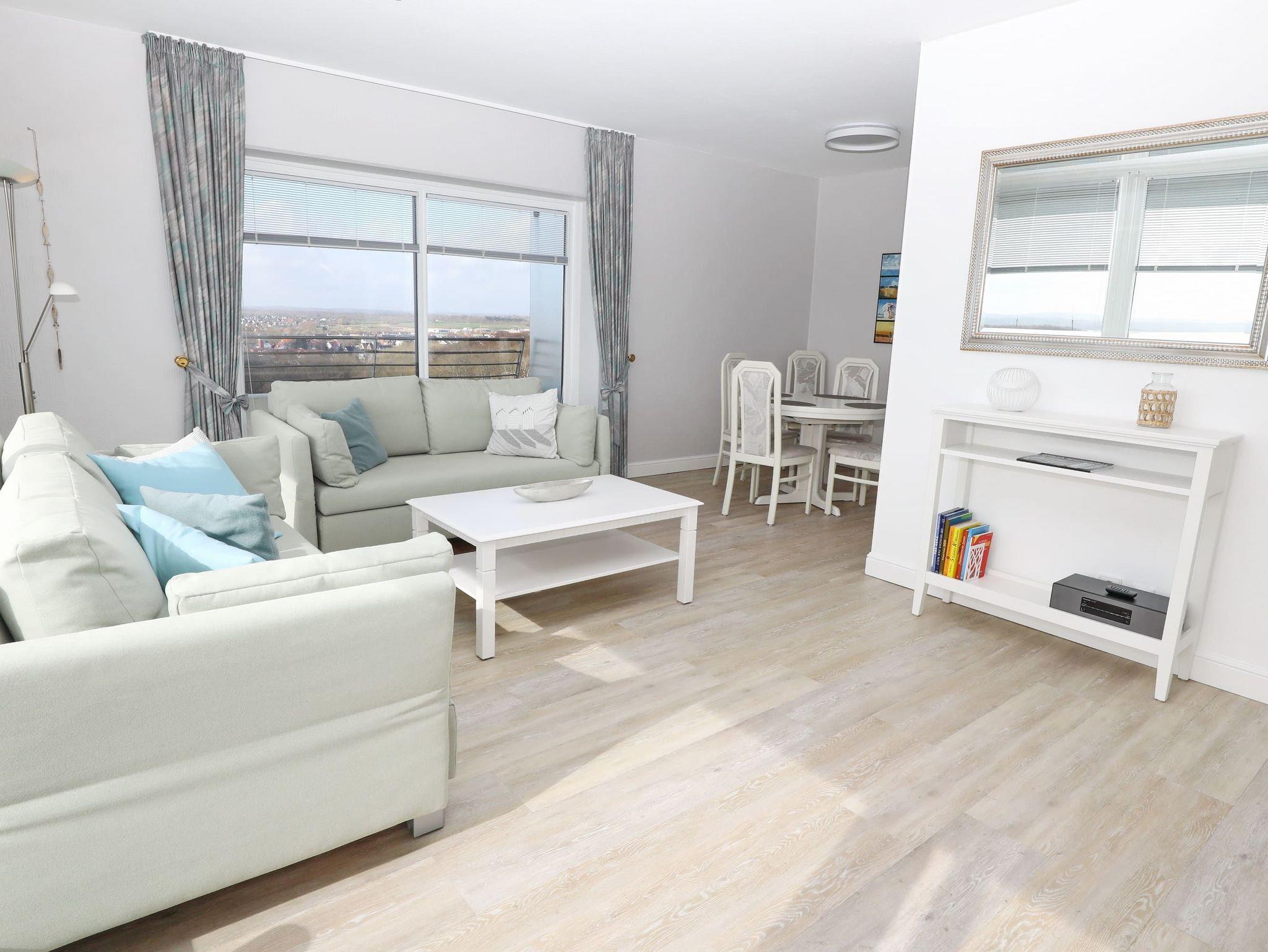 Umlaufende Loggia von ca. 21 m², Markisen, Küche, Geschirrspüler, Vollbad/WC, Fön, Waschmaschine, 2x TV, Stereoradio/CD, kostenl. W-Lan, Aufzug, inkl. Tiefgaragenstellplatz (Einfahrtshöhe: 1,85 m).