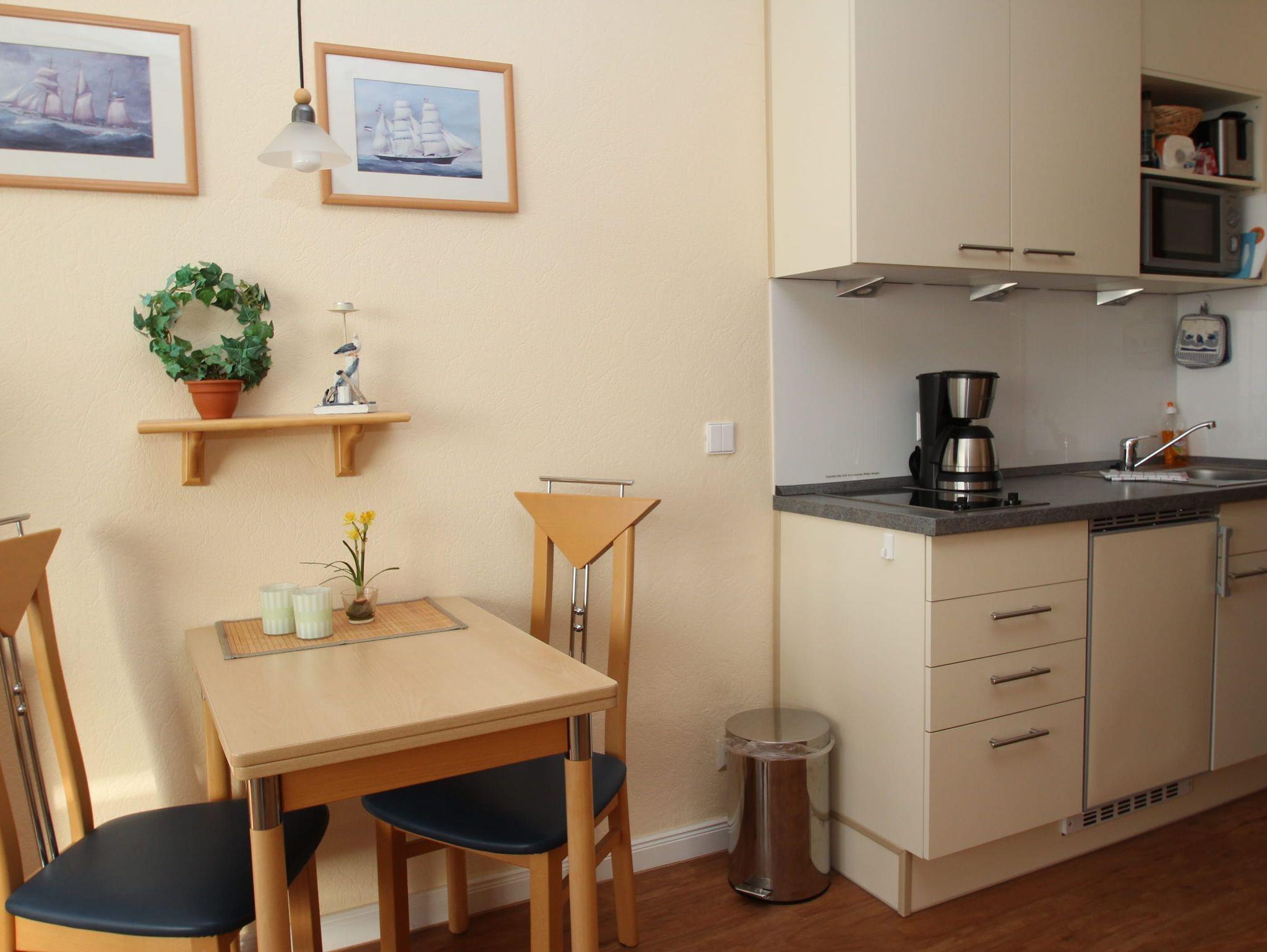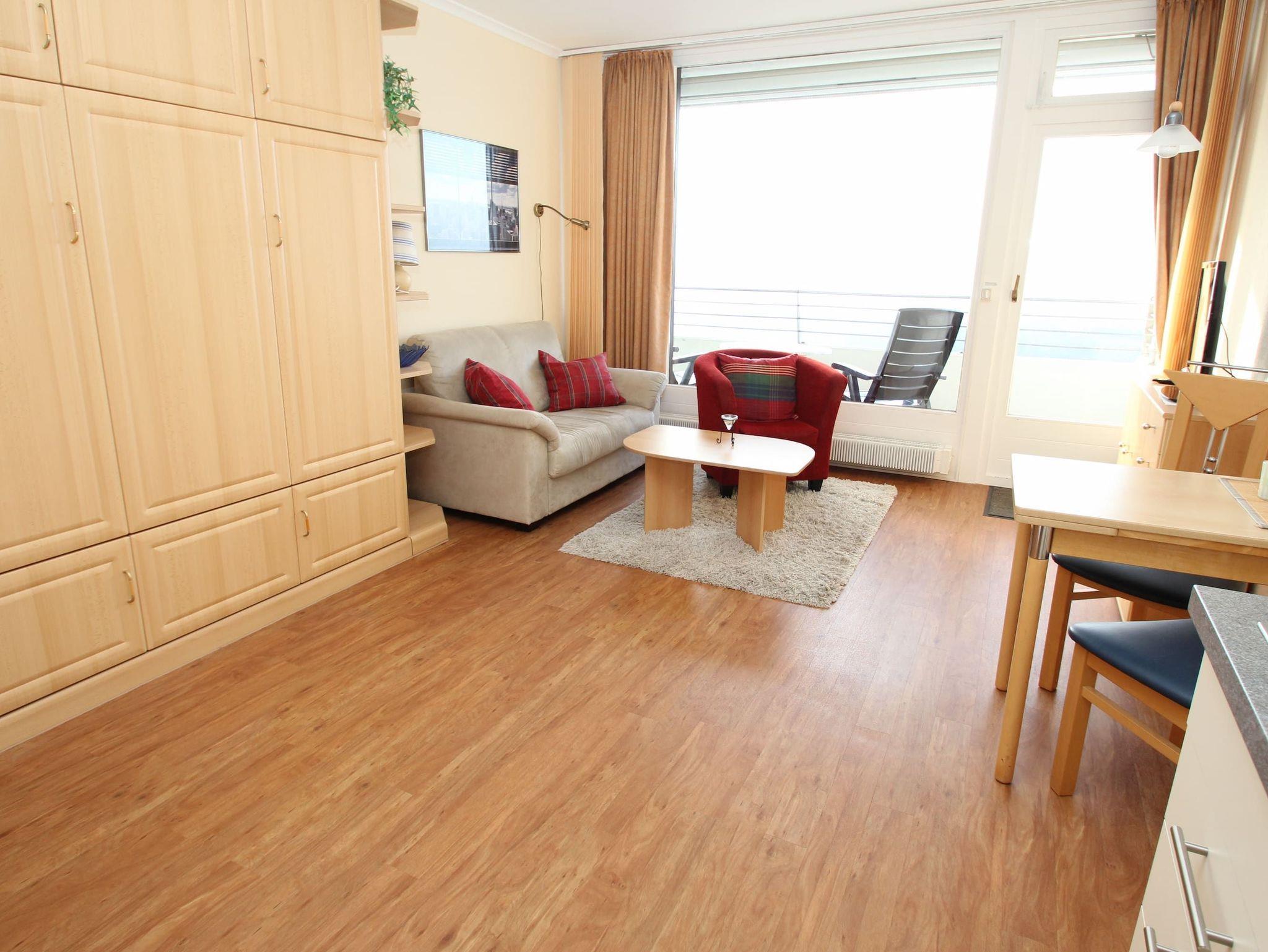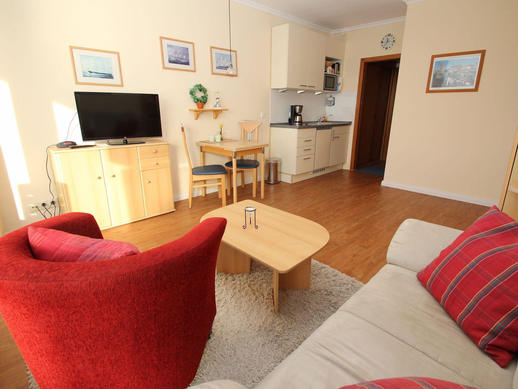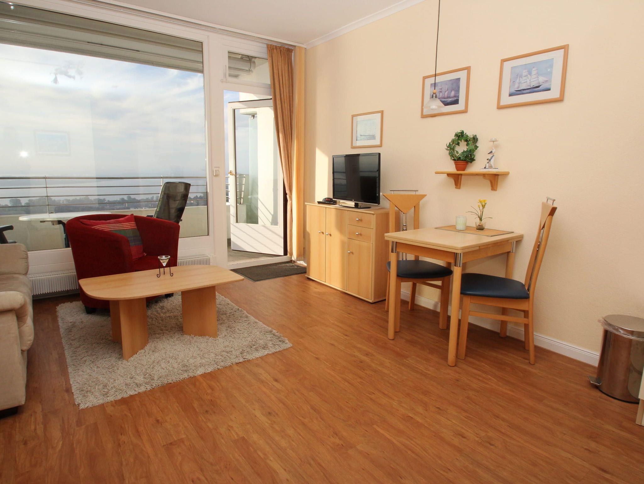 Dieses strandnah gelegene Appartement mit einer gemütlichen Einrichtung lädt zum Wohlfühlen und Entspannen fern des Alltags ein. Hier können Sie aus nächster Nähe das Strandleben genießen und das beschauliche Spiel der Segelboote im Wind beobachten. Im Wohnraum befinden sich ein Doppelschrankbett (2x 80 cm x 200 cm), eine bequeme Couch, ein Sessel und ein Tisch. Des Weiteren ist der Wohnbereich mit einem Essplatz neben der Küchenzeile ausgestattet. Das Bad erreichen Sie vom Flur. Die gesamte Wohneinheit strahlt einen charmanten Charakter aus. Vom Balkon genießen Sie einen traumhaften Blick auf die Mecklenburger Bucht und auf die Trave mit ein- und ausfahrendem Schiffsverkehr.