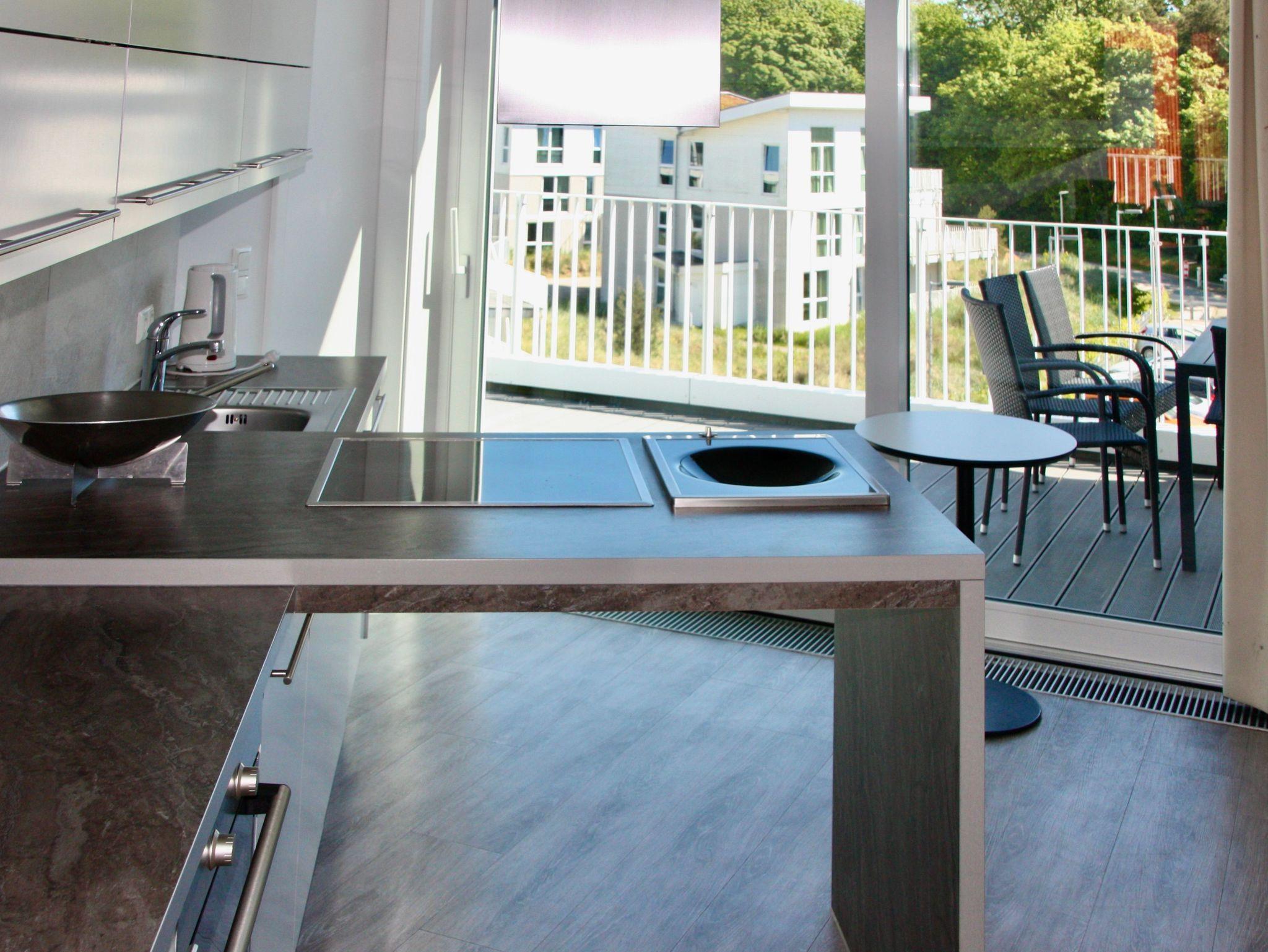 Auf der einen Terrasse können Sie in der Sonne im Windschatten frühstücken, auf der Terrasse zur Seeseite kann man sich auf der Sonnenliege an den vorbeigleitenden Ostsee-Fähren bei einem Sonnenbad erfreuen, um anschließend bei einem Sundowner den Sonnenuntergang vor der Skyline von Travemünde zu genießen.