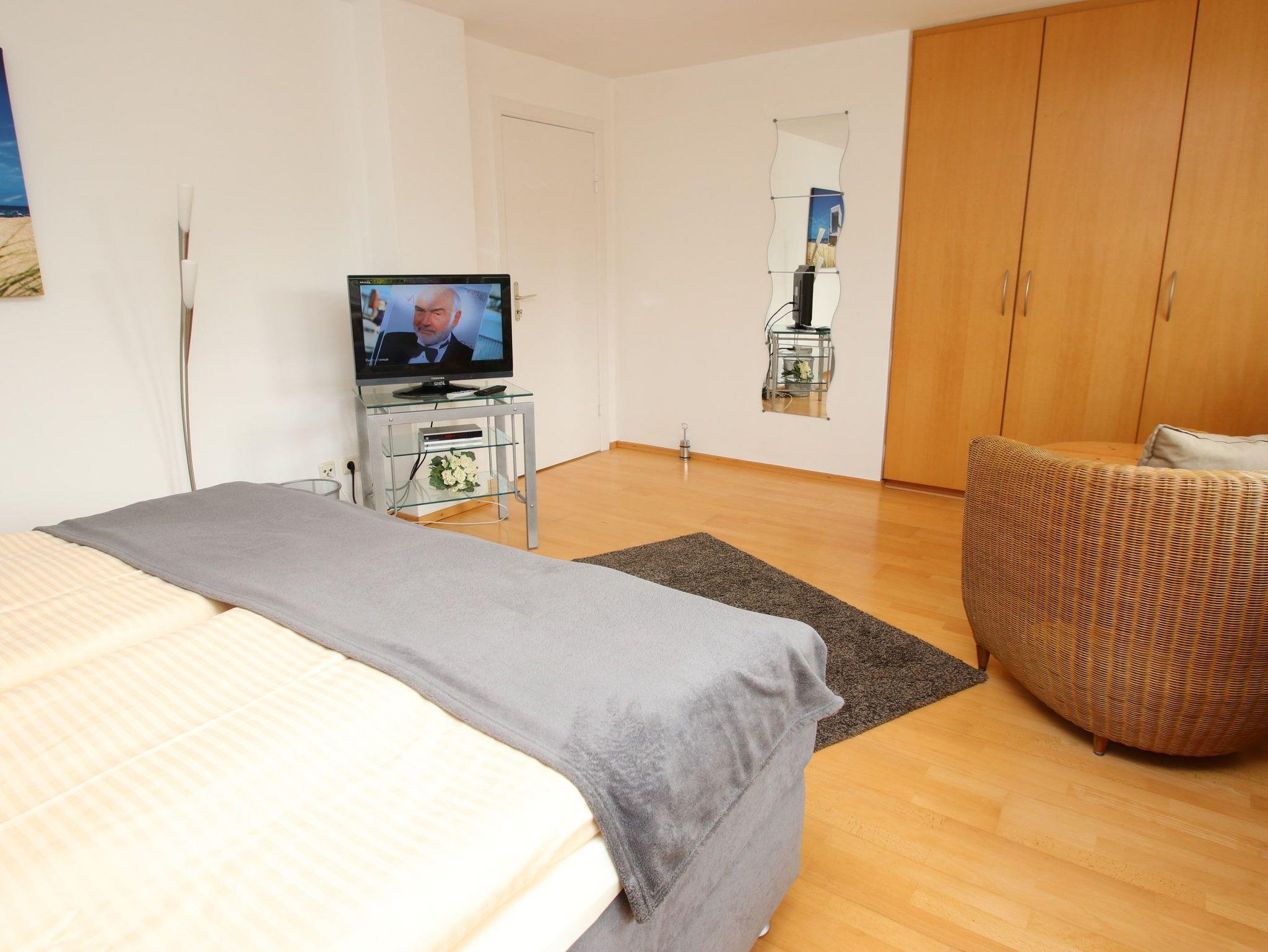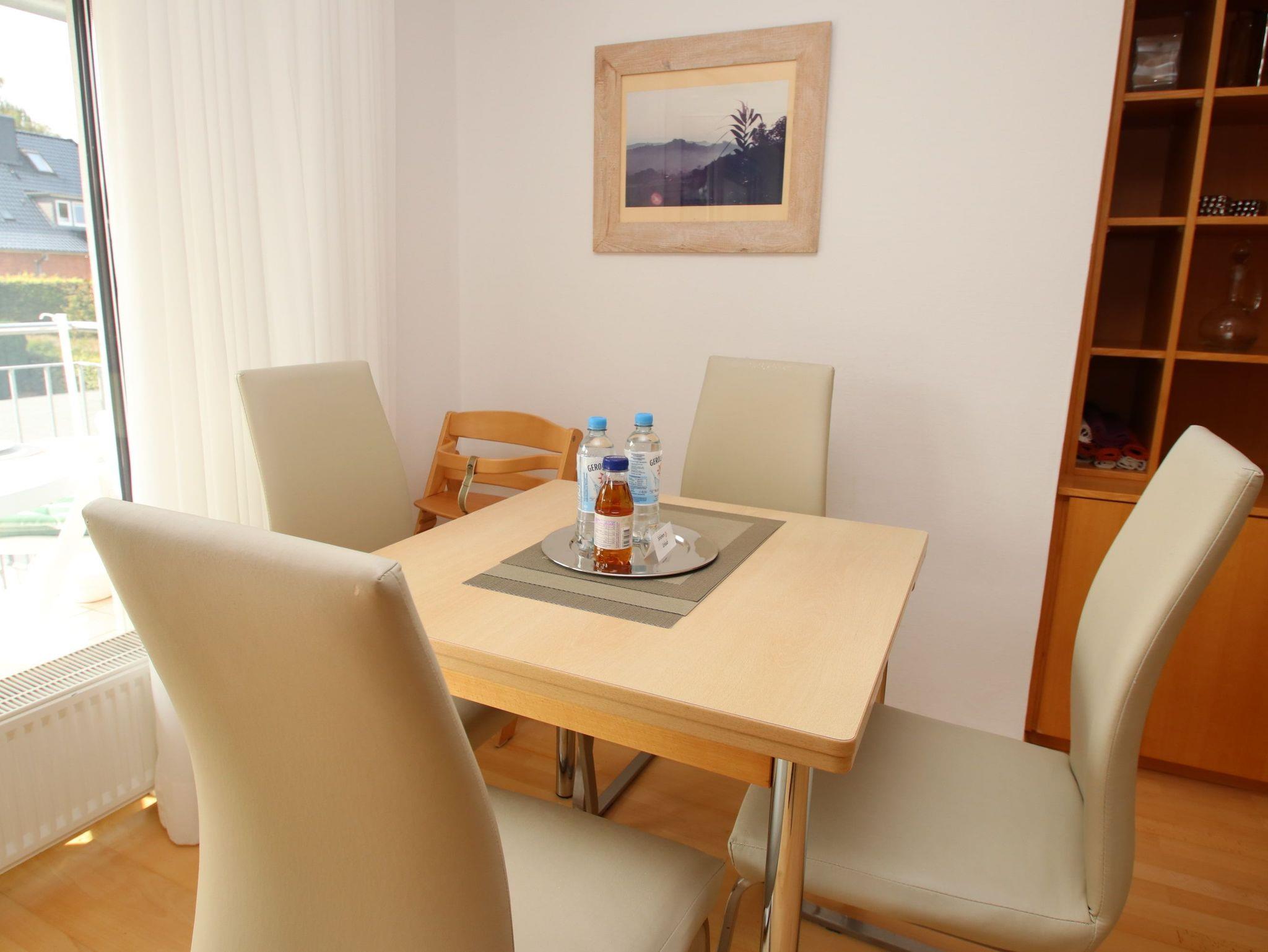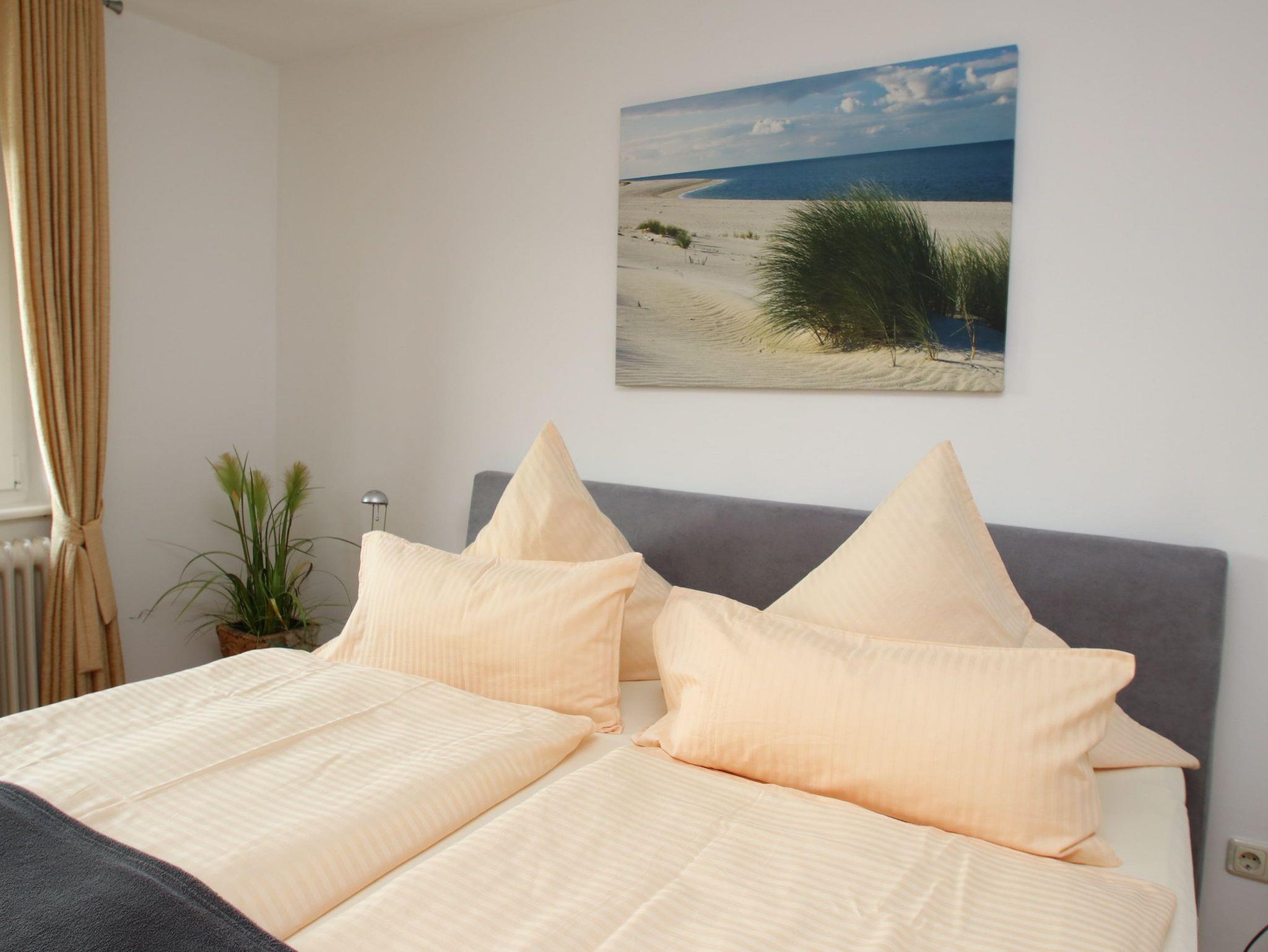 Diese strandnahe, modern eingerichtete Wohnung verfügt über viele praktische Ausstattungsmerkmale, die den Urlaubsaufenthalt für die ganze Familie so angenehm wie möglich machen. Im behaglichen Wohnzimmer stehen eine gemütliche, zweiteilige Sitzgarnitur mit Tisch und eine Essecke mit Anrichte. Im großen Schlafzimmer erwarten Sie ein bequemes Doppelbett (2x 90 cm x 200 cm) und ein Einbaukleiderschrank. Im weiteren Zimmer befinden sich ein Einzelbett (100 cm x 200 cm), das sich als Zusatzbett erweitern lässt, ein Kleiderschrank sowie eine kleine Sitzgruppe. Alle Räumlichkeiten, sowie die Küche, das Bad als auch das separate WC, gehen vom Wohnungsflur ab. In dieser in warmen Holztönen und farblich sehr schönen abgestimmten Wohneinheit fühlen Sie sich das ganze Jahr über wohl. Den sonnigen Süd-West-Balkon erreichen Sie vom Wohnzimmer oder Sie verweilen auf der hauseigenen Liegewiese.