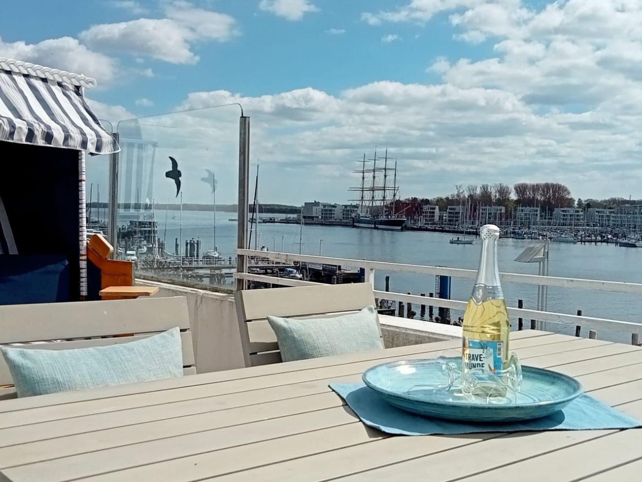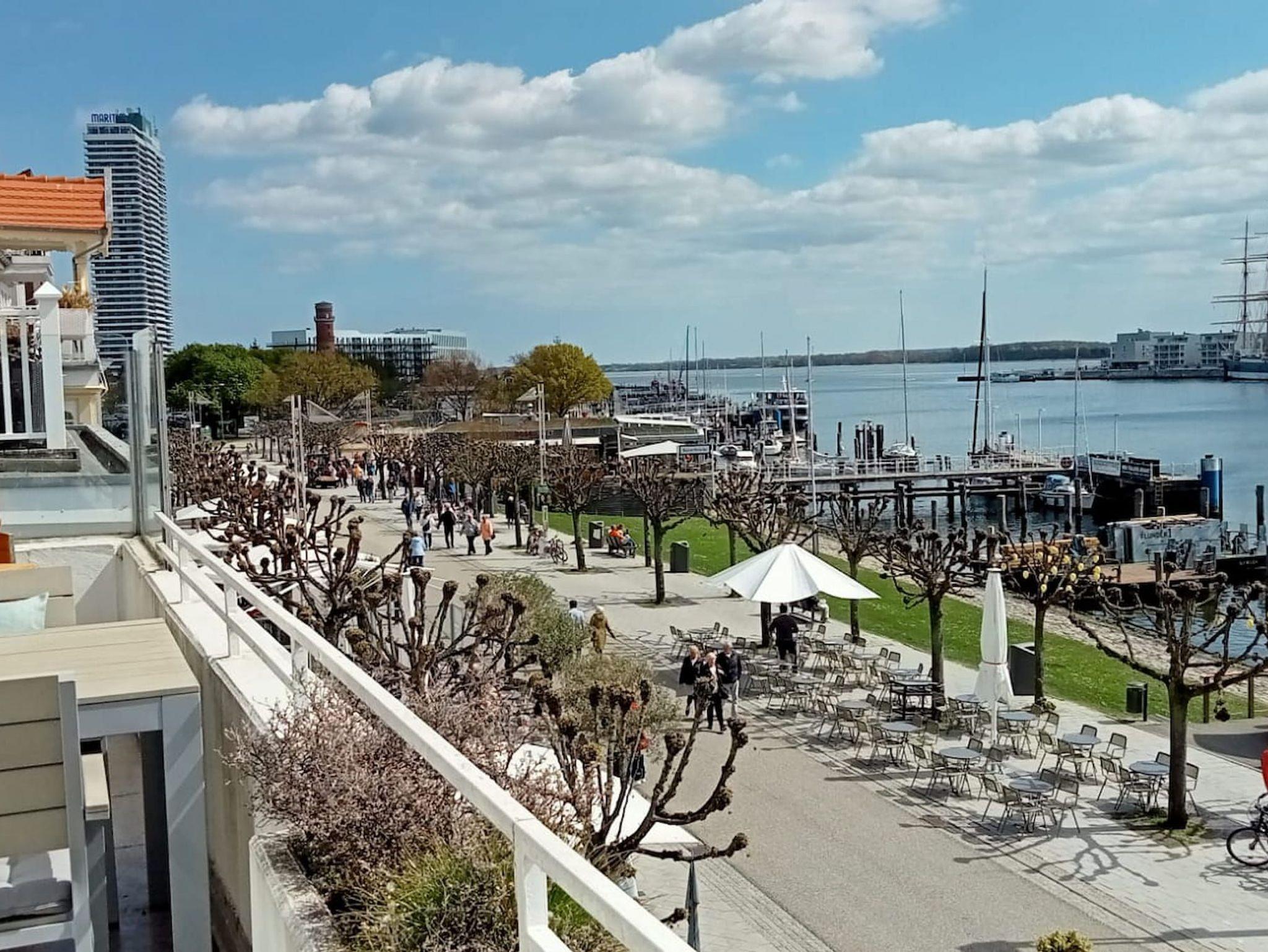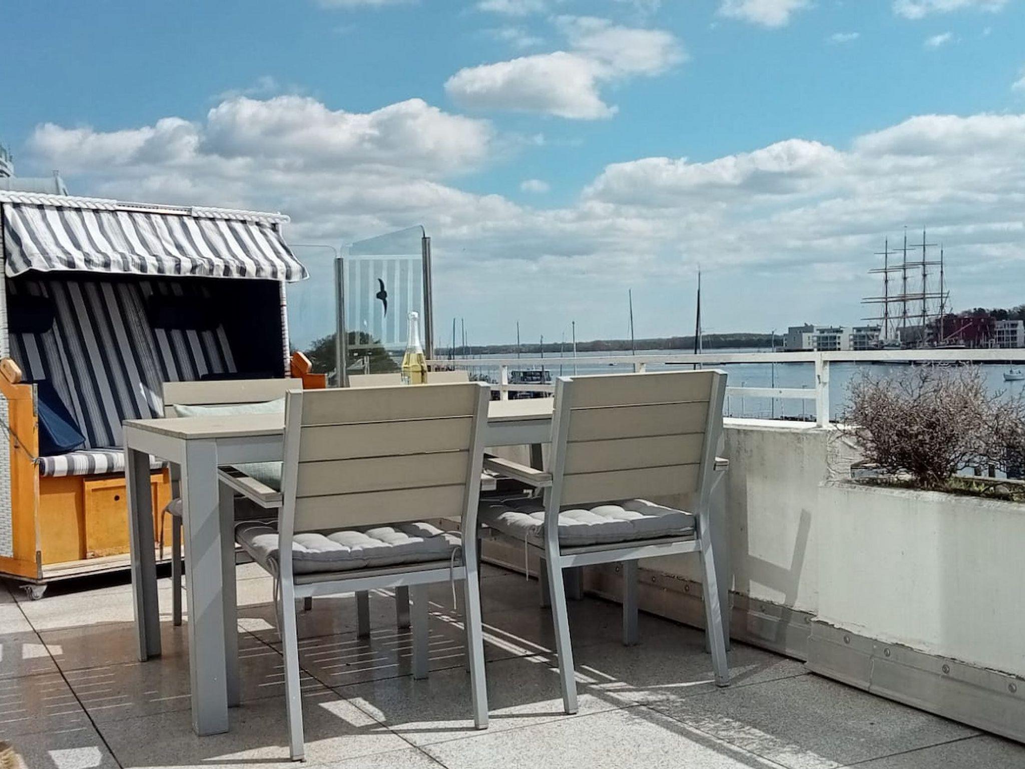 Sonniger Balkon von 20 m² mit Strandkorb, Markisen, Küche, Geschirrspüler, Mikrowelle, Duschvollbad/WC, Fön, TV, Stereoradio mit CD, kostenl. W-Lan, inkl. Tiefgaragenstellplatz im Nachbarhaus (Einfahrtshöhe: 1,80 m).