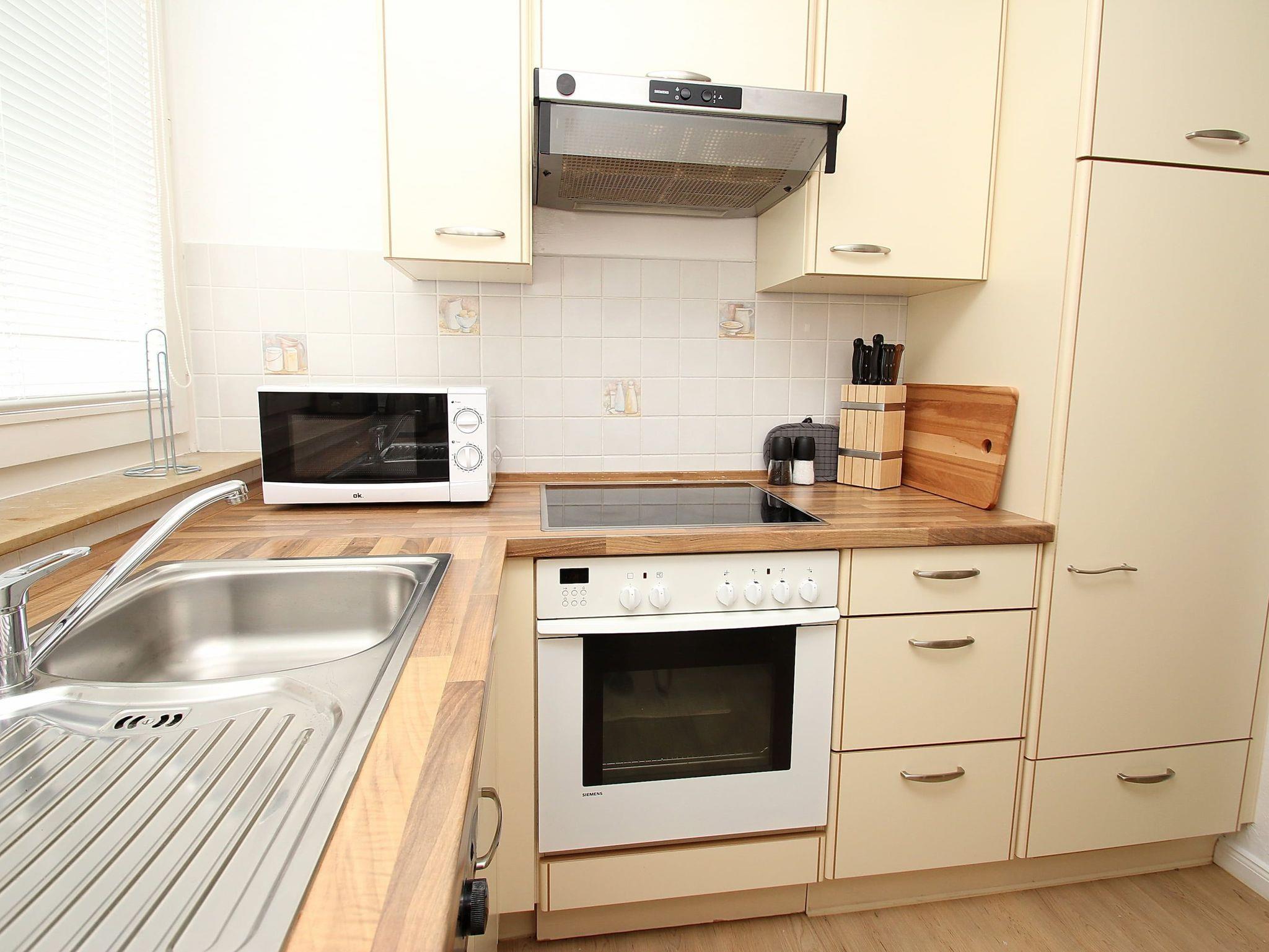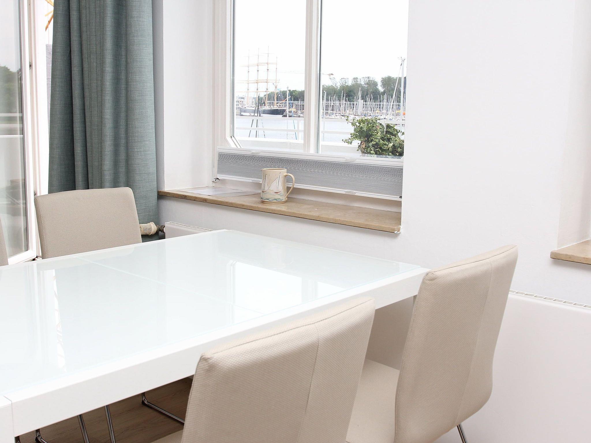 Dieses empfehlenswerte Feriendomizil gehört mit seiner Lage direkt an der Trave zu den absoluten Highlights. Hier verbringen Sie eine unvergessliche Zeit! Vom Eingang gelangen Sie in den großen Flur, von dem alle Wohnräume sowie auch die Küche mit Einbauschränken abgehen. Im Wohnzimmer stehen eine Couch mit Tisch, ein Sessel, eine Glasvitrine und ein Esstisch mit Stühlen. Außerdem hat die Wohnung zwei Schlafzimmer mit jeweils einem Doppelbett (2x 90 cm x 200 cm) und einem Kleiderschrank. Das Bad ist hell gefliest und beinhaltet eine Badewanne und eine Dusche. Vom sonnigen Balkon, den Sie vom Wohnzimmer erreichen, genießen Sie im Zentrum Travemündes die frische Seeluft und können aus nächster Nähe alle Schiffe beobachten.