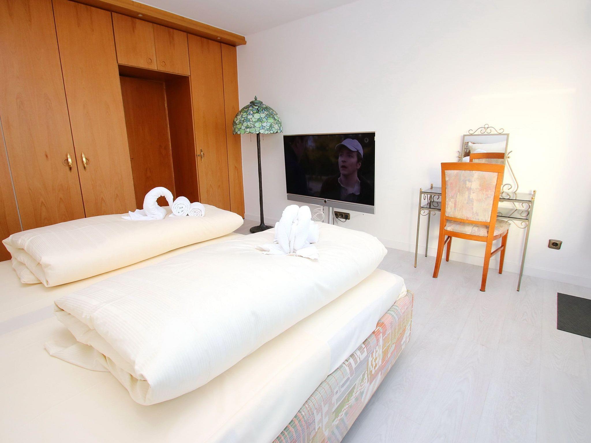 Umlaufende Loggia von ca. 28 m², offene Küche, Geschirrspüler, Duschvollbad/WC, Fön, 3x HD Wlan-TV, Stereoanlage, kostenl. 250 Mbit/s W-Lan, Aufzug, inkl. Tiefgaragenstellplatz (Einfahrtshöhe: 1,85 m).