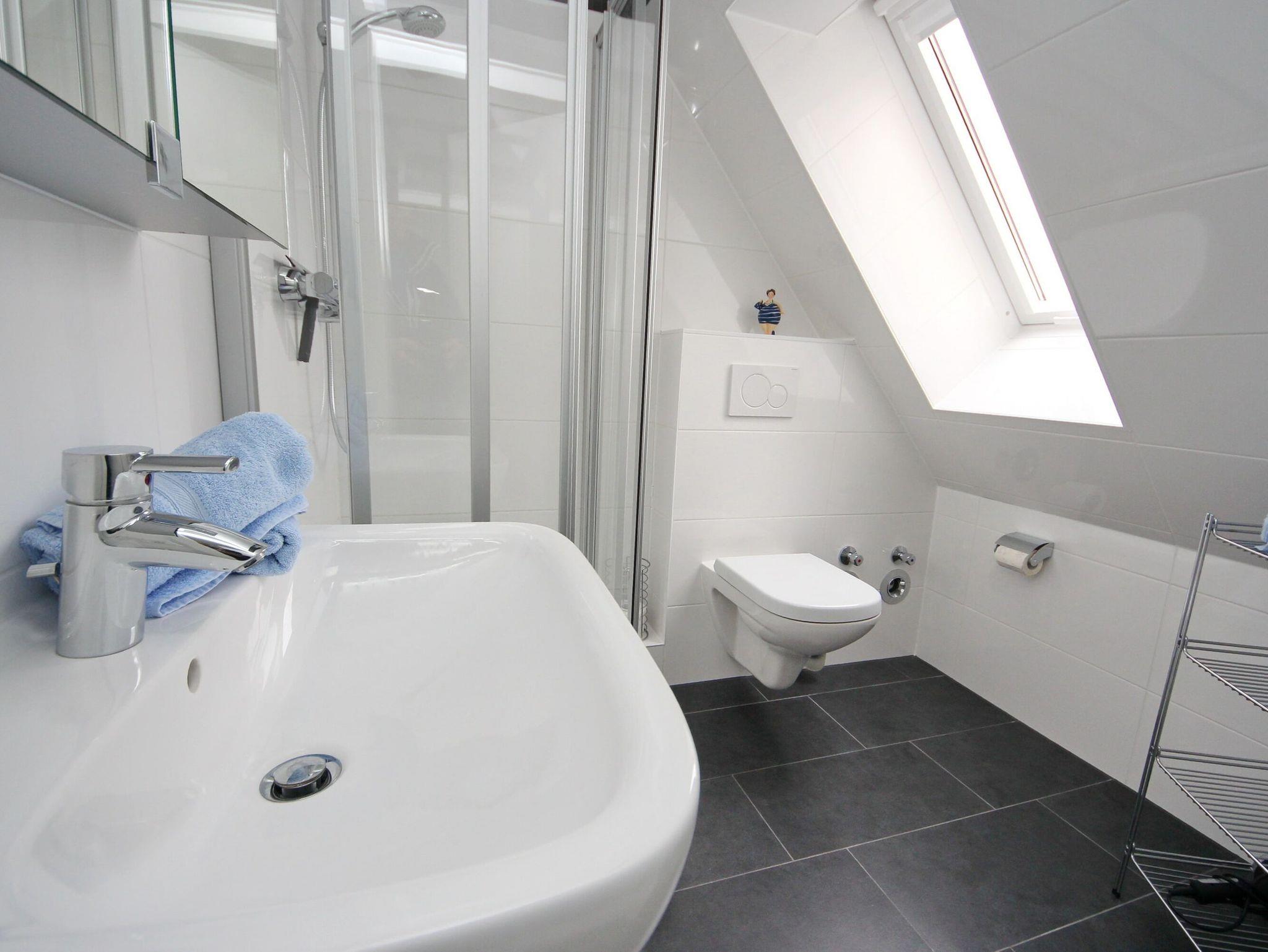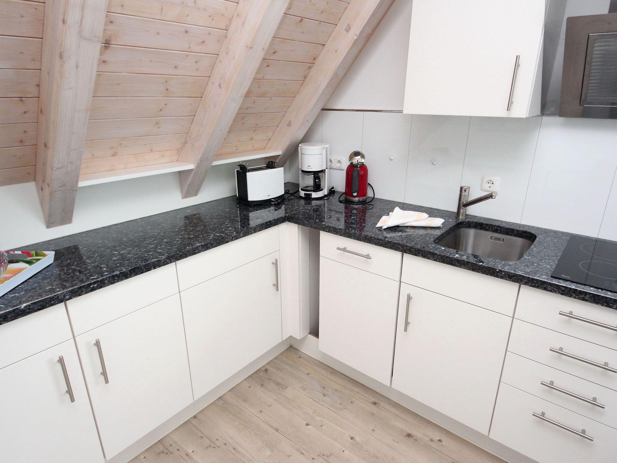 Zwei Dachterrassen (eine davon mit Strandkorb), Küchenzeile, Geschirrspüler, Mikrowelle, Duschbad/WC, Fön, TV, Stereoradio mit CD, kostenl. W-Lan, inkl. Außenstellplatz.