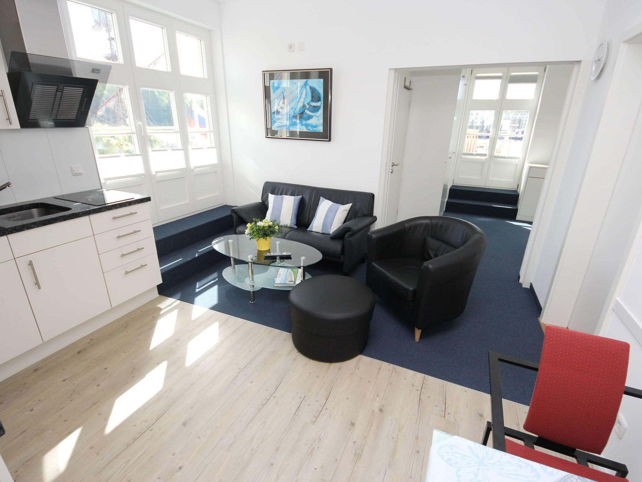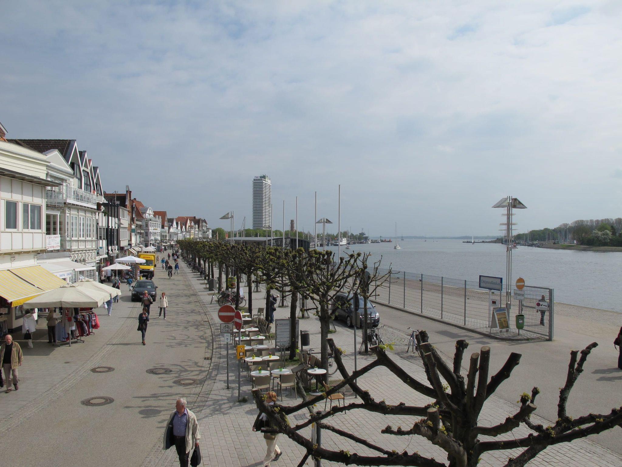 Hier wohnen Sie direkt an der Trave in einer komplett sanierten Ferienwohnung. Sie können von zwei sonnigen Dachterrassen die ein- und ausfahrenden Fährschiffe beobachten und den faszinierenden Blick die Trave hinunter auf die Ostsee genießen. Beim betreten der Wohneinheit empfängt Sie das lichtdurchflutete Wohnzimmer, das mit einer bequemen Couch, einem Sessel mit Hocker und einem Tisch sowie einer schönen Essecke ausgestattet ist. Die offene Küchenzeile ist ebenfalls im Wohnzimmer integriert. Das Schlafzimmer, durch eine Schiebetür zum Wohnbereich abgetrennt, verfügt über ein komfortables Doppelbett (2x 90 cm x 200 cm) und einen Einbaukleiderschrank. Vom Schlafzimmer gelangen Sie in das moderne Duschbad. Aktuelle Livebilder vom Ausblick dieses Feriendomizils sehen Sie auf den Webcams 3 und 4.