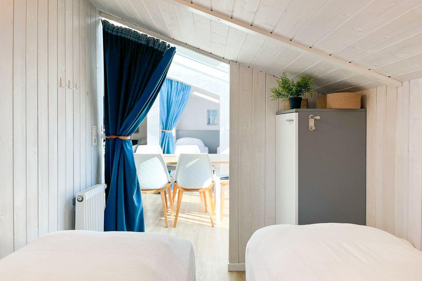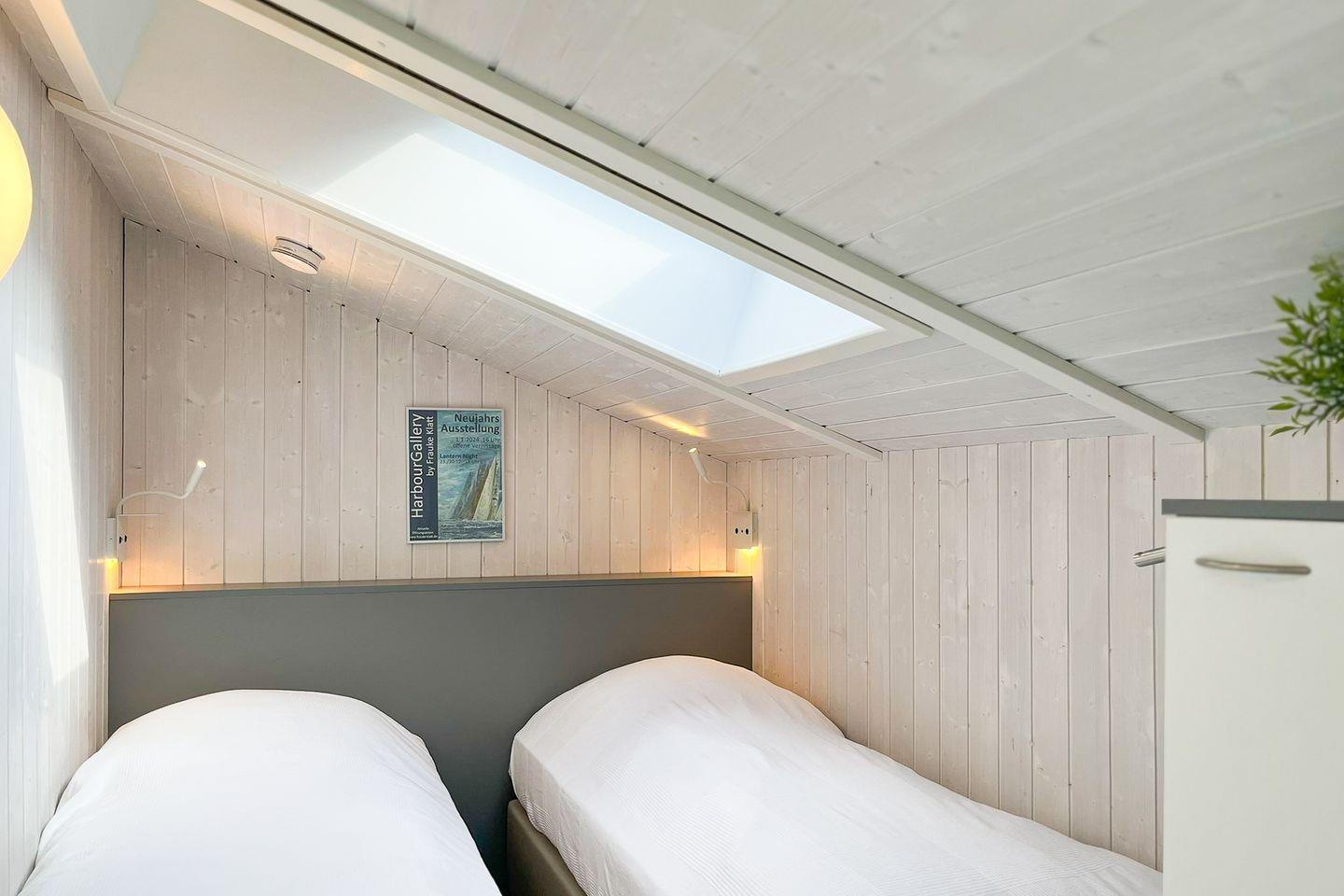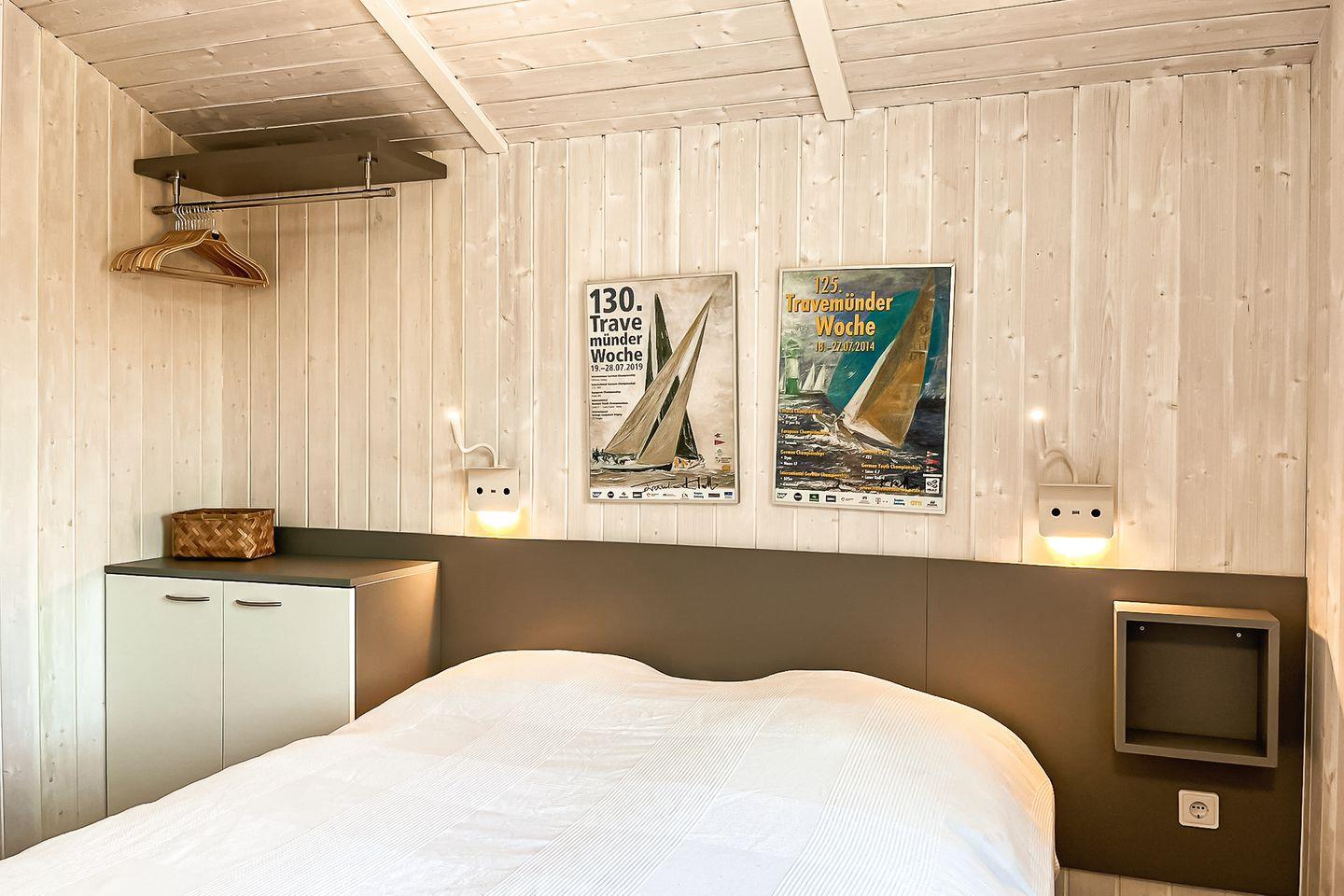 Vier Schlafzimmer sind mit je einem Boxspringbett ausgestattet. In den Alkoven befinden sich jeweils zwei Einzelbetten (je 80 x 200). Jedes Schlafzimmer bietet Dir geräumige Möbel für deine Urlaubsgarderobe.