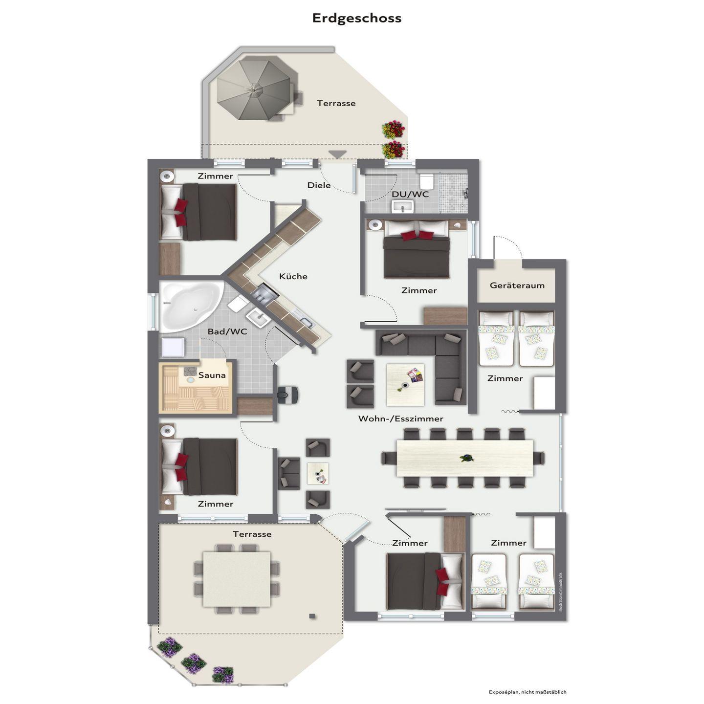 - 4 Schlafzimmer mit komfortablen Doppelbetten
