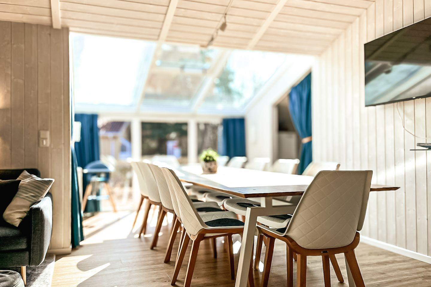 Das Ferienhaus bietet auf großzügigen 121 m² Platz für bis zu 12 Personen, perfekt für Familien oder Freunde. Es verfügt über insgesamt 6 Schlafräume: