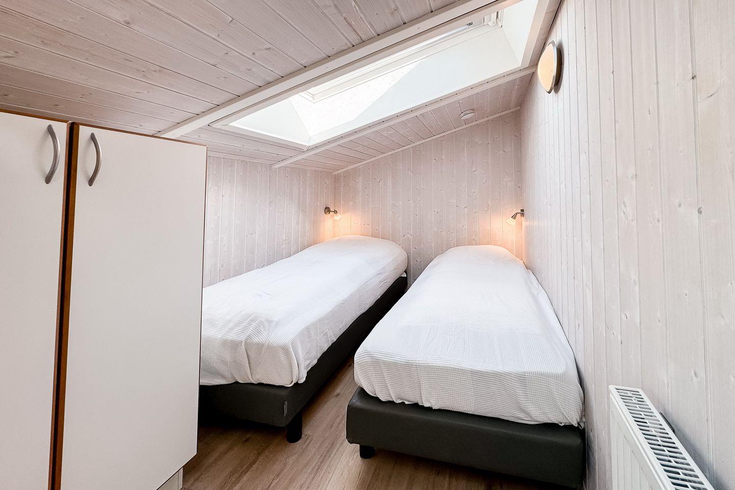 Vier Schlafzimmer sind mit zwei Einzelbetten (je 80 x 200) ausgestattet, die zu Doppelbetten zusammengeschoben sind. In zwei Alkoven befinden sich jeweils zwei Einzelbetten (je 80 x 200). Jedes Schlafzimmer bietet einen geräumigen Kleiderschrank für Deine Urlaubsgarderobe.