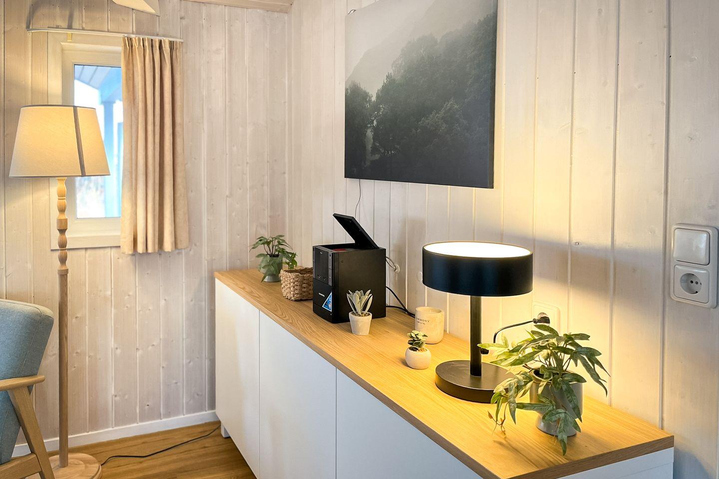 Der großzügige Wohnbereich mit einem Schlafsofa ist der perfekte Ort, um Zeit miteinander zu verbringen. Die lichtdurchflutete Gestaltung schafft ein angenehmes Ambiente, in dem Du Dich sofort wohlfühlen wirst.