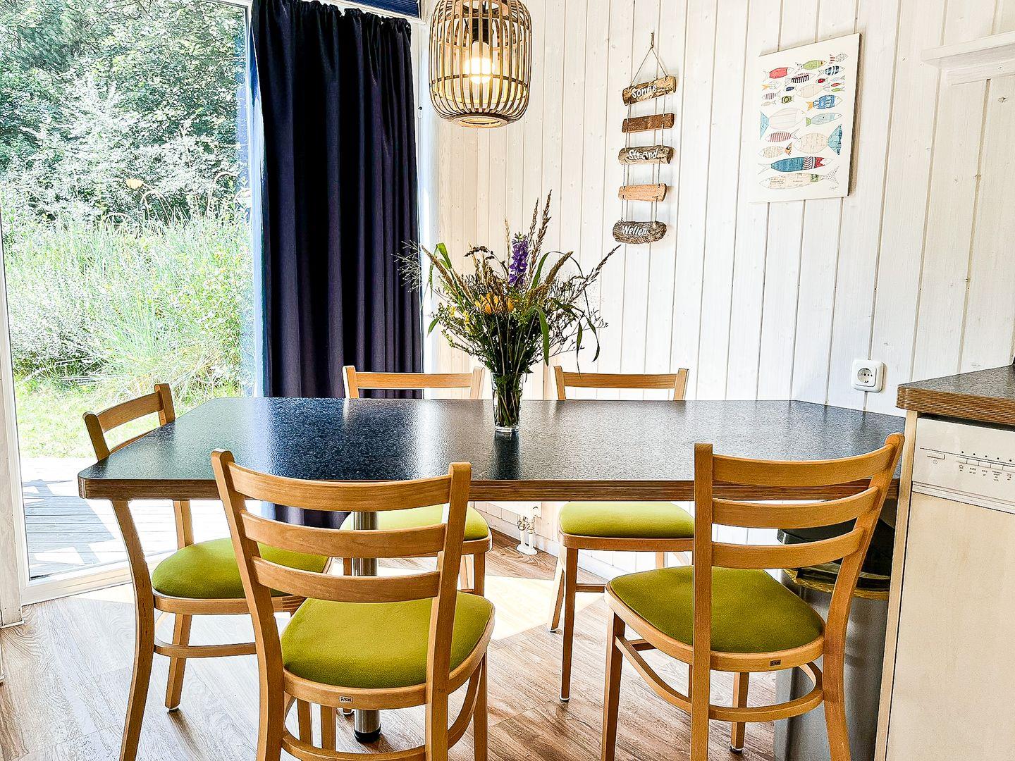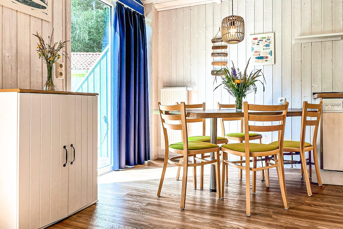 Alle Fenster sind mit Plissees ausgestattet, die Dir sowohl eine Verdunklung als auch Sichtschutz bieten. Für die kleinsten Gäste stehen ein Hochstuhl und ein Babybett bereit.