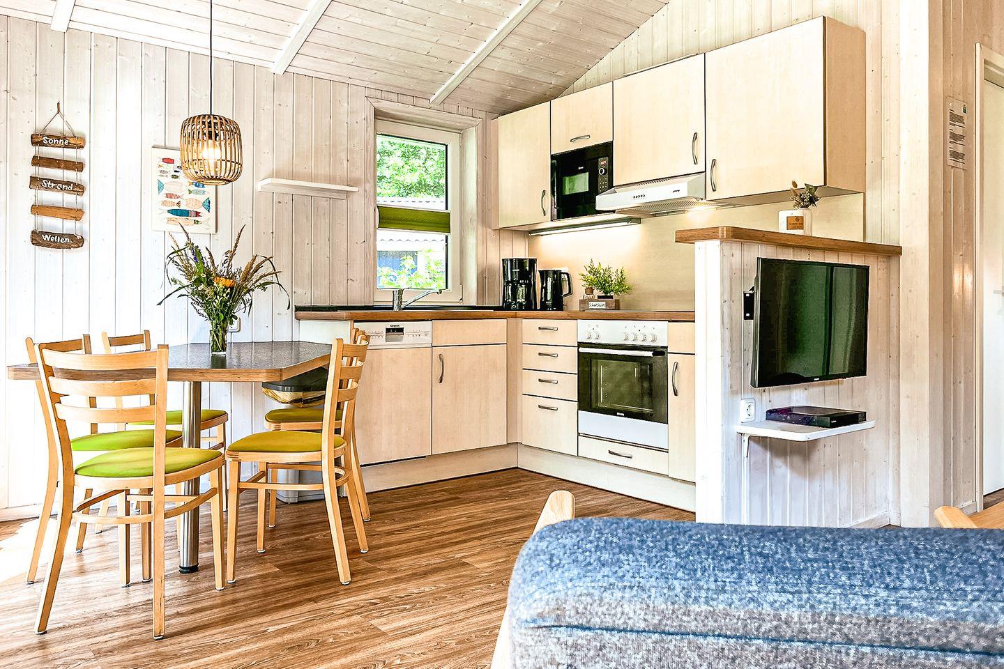 Die direkt angrenzende Küchenzeile ist vollständig ausgestattet und erleichtert Dir die Selbstverpflegung: