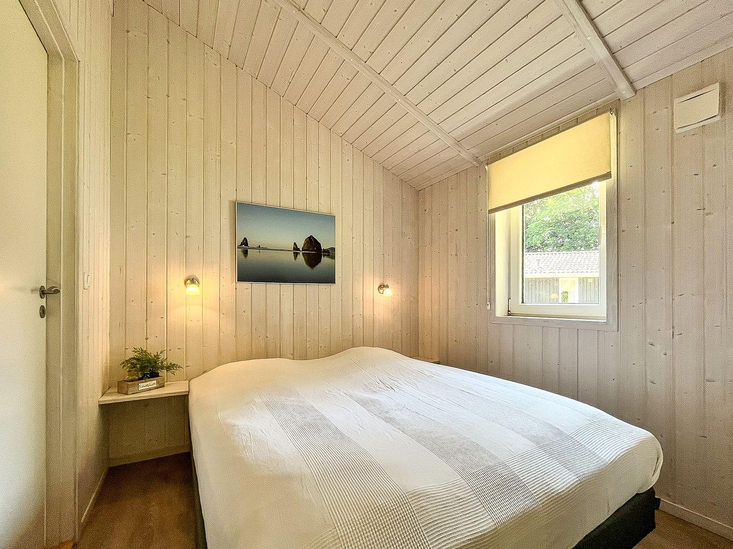 Das Haus verfügt über zwei Schlafzimmer – ideal für bis zu vier Personen. Jedes Zimmer bietet Dir Stauraum für Deine Urlaubssachen und sorgt durch Vinylboden für ein wohnliches Gefühl.