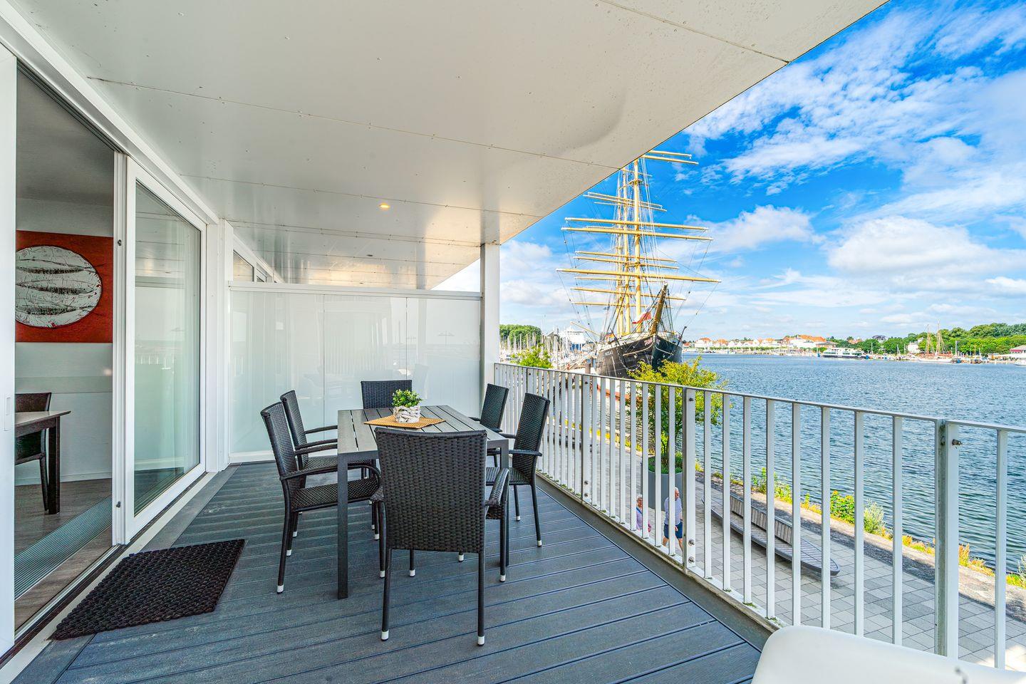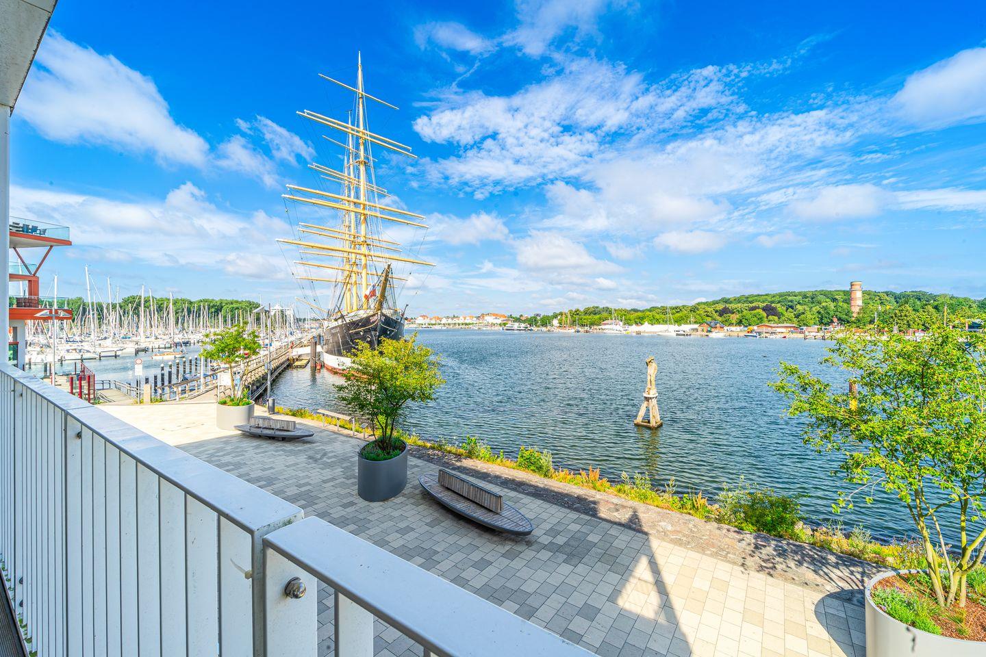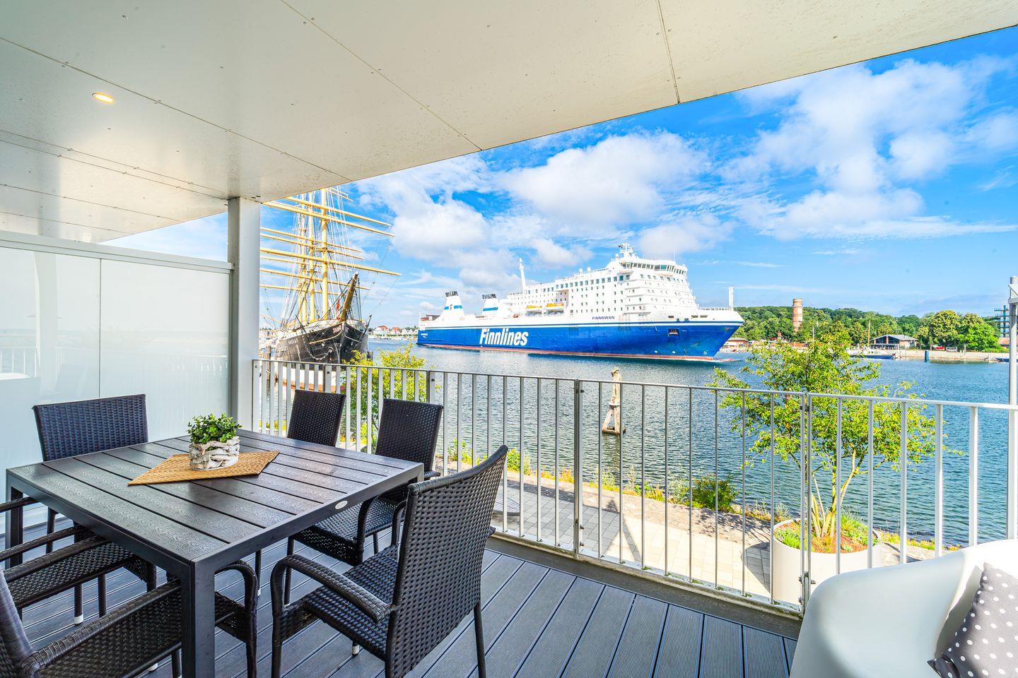 Auf rund 82 m² erwartet Dich ein stilvolles Urlaubsdomizil mit Wohn-Essbereich, offener Küche, zwei separaten Schlafzimmern, einem luxuriösen Badezimmer sowie einem großen Balkon mit eindrucksvollen Blick auf den Segelhafen, die Travemündung, das Museumsschiff „Passat“ und die vorbeiziehenden Skandinavienfähren.