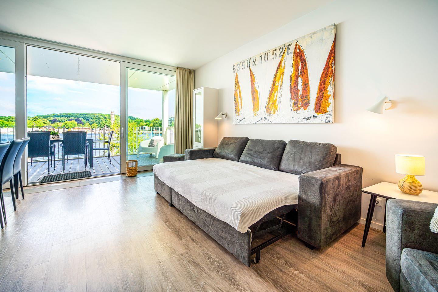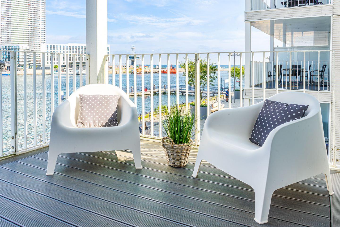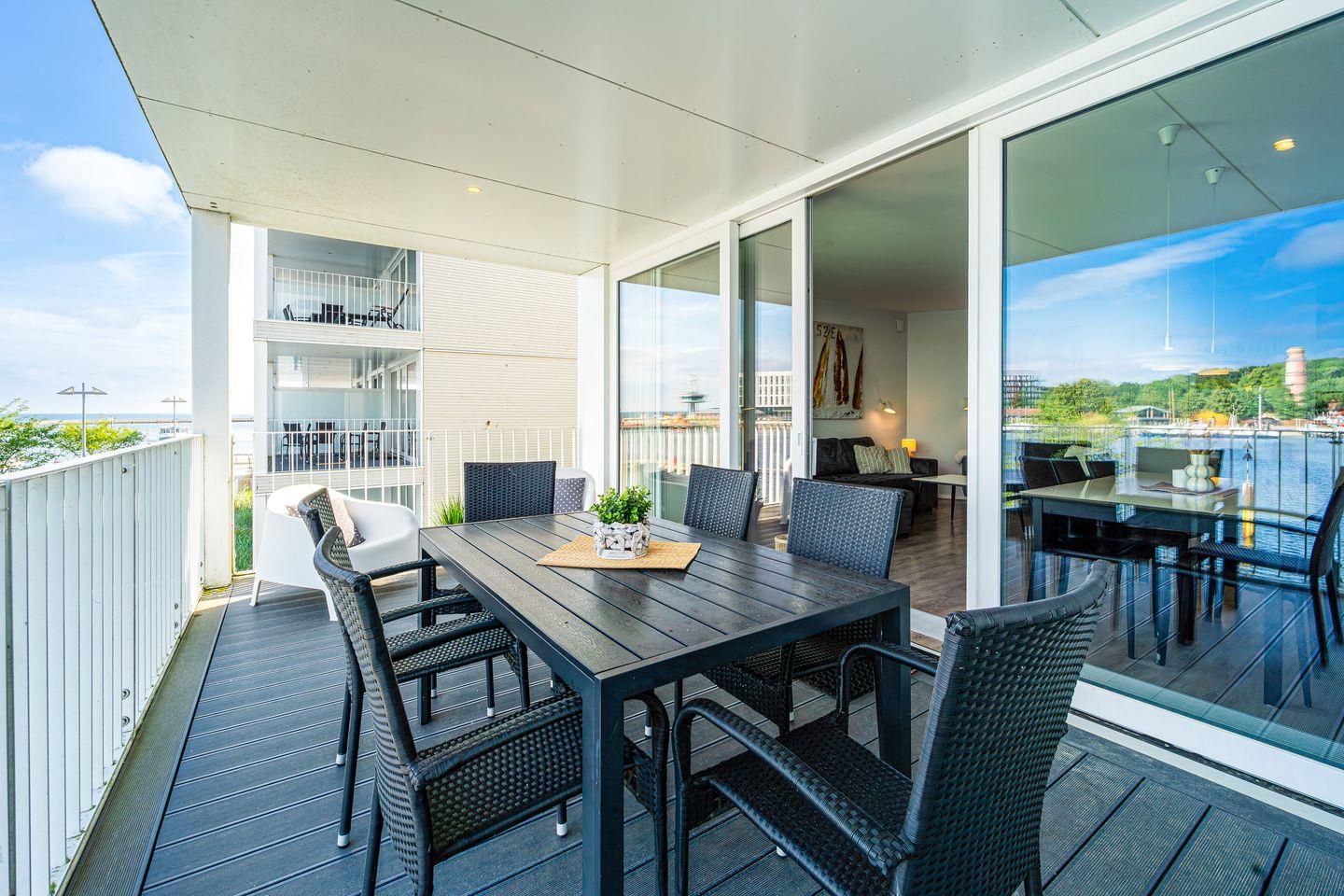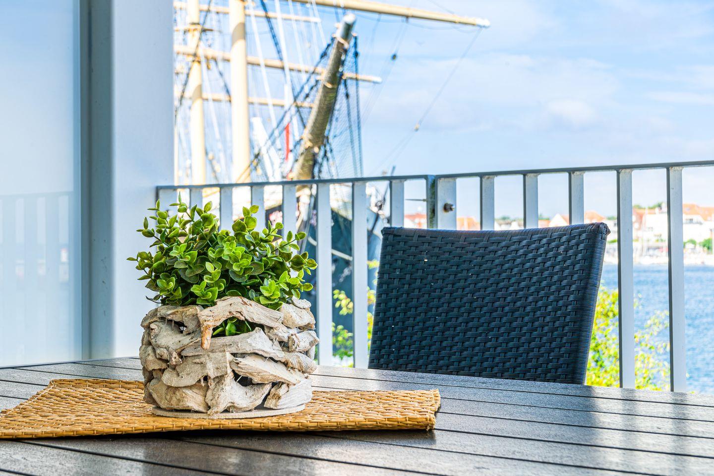 Auf rund 82 m² erwartet Dich ein stilvolles Urlaubsdomizil mit Wohn-Essbereich, offener Küche, zwei separaten Schlafzimmern, einem luxuriösen Badezimmer sowie einem großen Balkon mit eindrucksvollen Blick auf den Segelhafen, die Travemündung, das Museumsschiff „Passat“ und die vorbeiziehenden Skandinavienfähren.