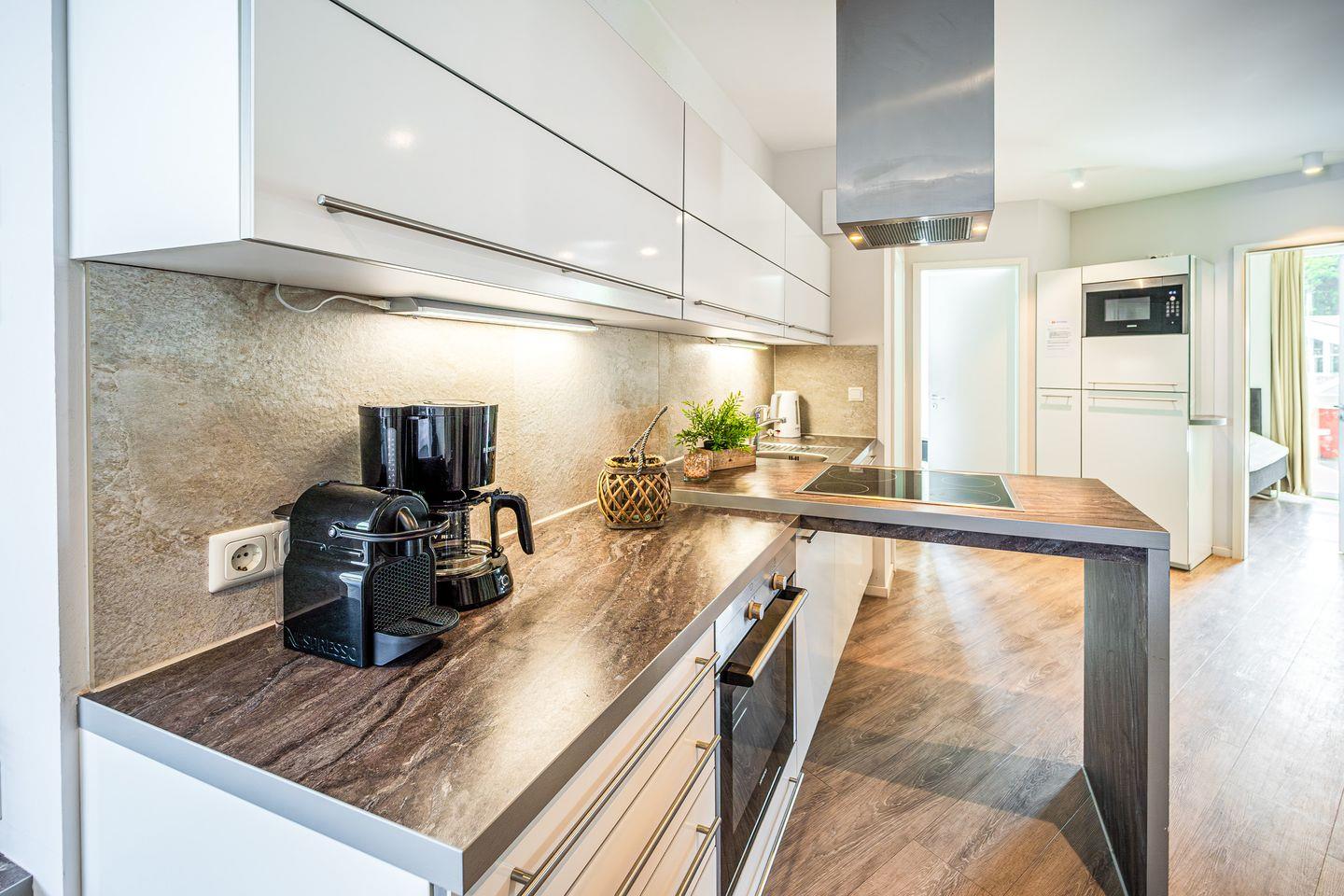 Die offene Küche lässt keine Wünsche offen: Neben einem 4-Platten-Herd steht Dir ein zusätzliches Wok-Kochfeld zur Verfügung. Außerdem findest Du Backofen, Kühlschrank mit Gefrierfach, Geschirrspüler, Mikrowelle, Toaster, Wasserkocher, Kaffeemaschine und Nespresso-Maschine. Geschirr, Besteck und Kochutensilien sind selbstverständlich vorhanden.