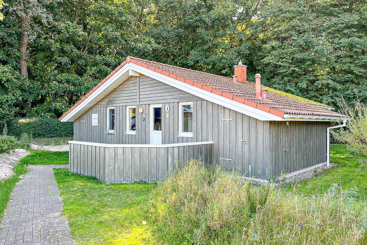 Das Ferienhaus 03 in ruhiger Lage bietet auf 86 m² Platz für bis zu 6 Personen. Es verfügt über drei Schlafzimmer, ein Wohnzimmer mit offener Küche, ein Bad mit Sauna und Whirlwanne und eine Terrasse mit Gartenblick. Haustiere sind willkommen (max. 2). Der Sandstrand ist nur 300 Meter entfernt. WLAN, Kaminofen und Privatparkplätze gehören ebenso zur Ausstattung.
