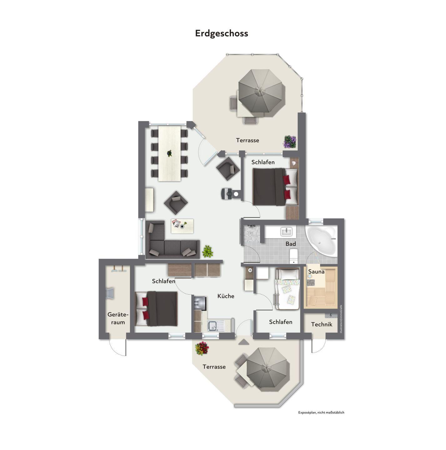 Ob Grillen, Buch lesen oder einfach nur Sonnen: Die großzügige Terrasse bietet die maximale Urlaubsentfaltung und schafft das Höchstmaß an Erholung!
