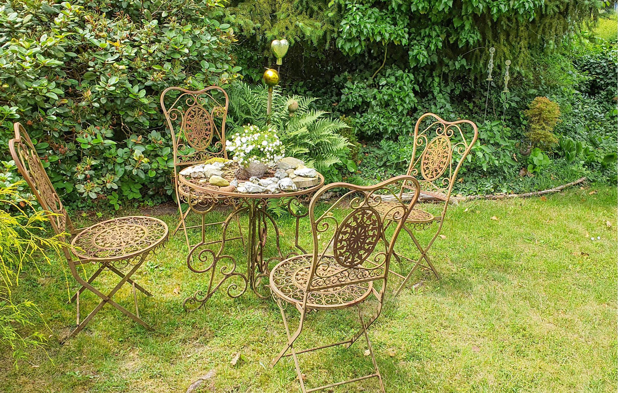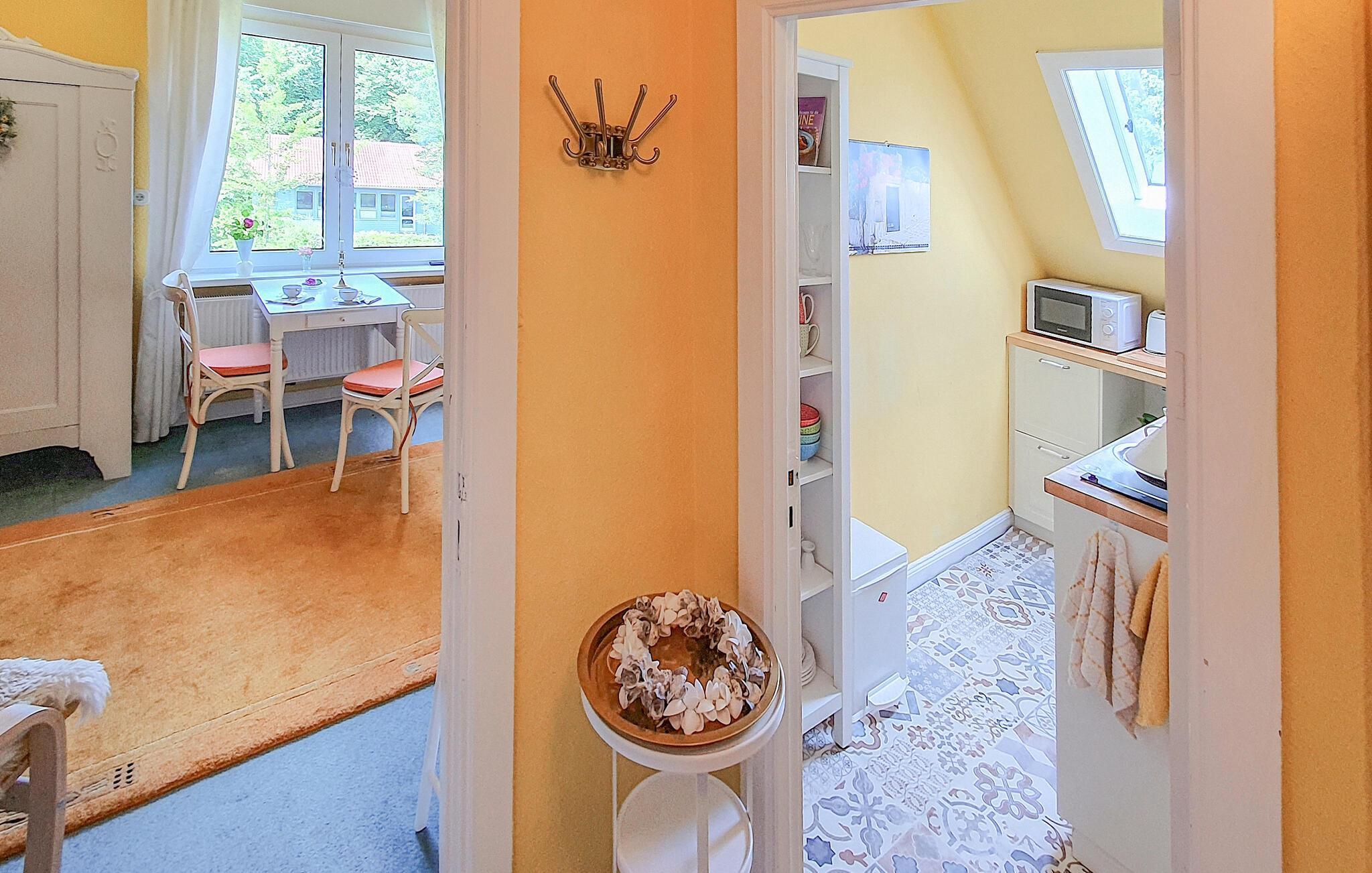I haven er der bord og stole af metal, hvor I kan drikke kaffe og spise kage. Lige foran huset er der et busstoppested, hvorfra I kan starte rejsen i alle retninger, måske til den gamle bydel i Lübeck. Eller til det nærliggende Travemünde eller til Timmendorfer Strand, med lange, brede sandstrande. Det naturbeskyttede område Schellbruch ved floden Trave ligger få minutter væk til fods.