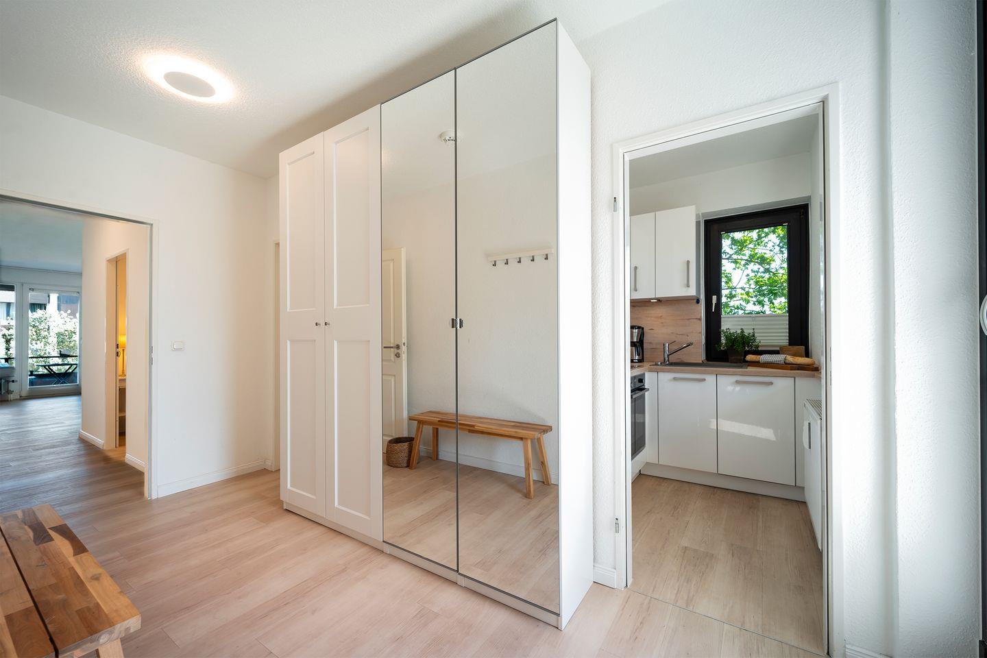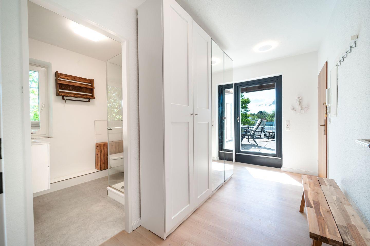 Ein echtes Highlight sind die zwei Balkone: Der Nordost-Balkon lädt Sie zum sonnigen Frühstück ein und lässt einen Blick auf die Ostsee aus zweiter Reihe erhaschen – hier spüren Sie das maritime Lebensgefühl ganz nah. Der zweite Balkon ist großzügig geschnitten, sonnig und mit Liegestühlen sowie einem Tisch ausgestattet – ein idealer Ort für entspannte Sonnenstunden ab der Mittagszeit. Speziell genießt man hier die Momente zum Abend und entsprechendem Sonnenuntergang unter freiem Himmel.