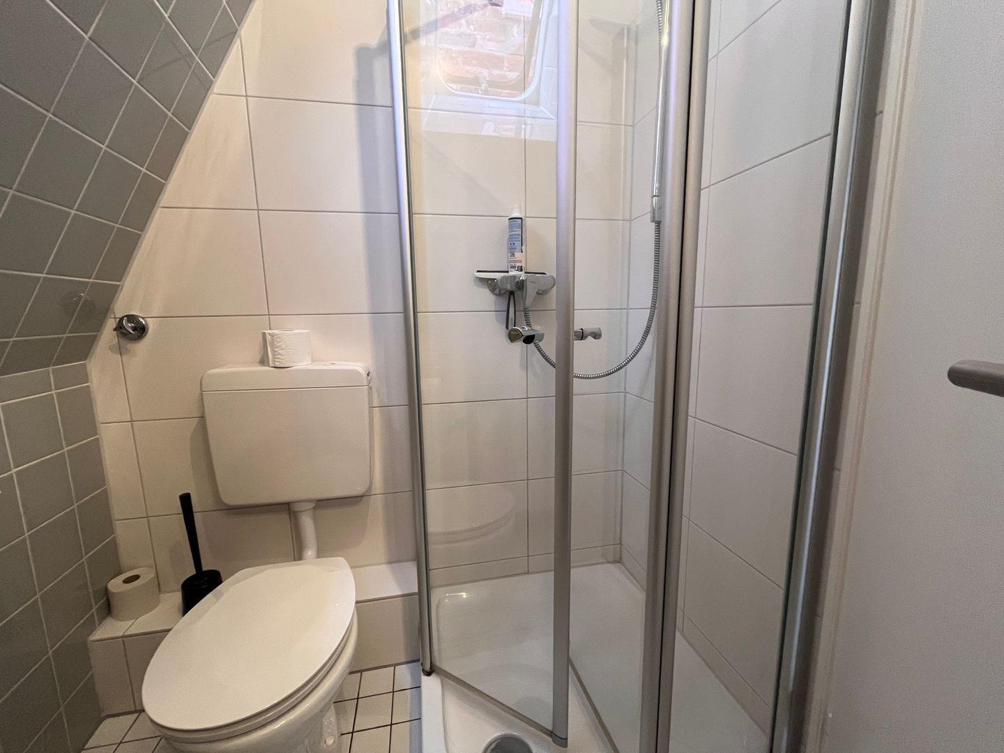 Das Badezimmer ist mit einer Dusche (mit Wanne), WC, Waschbecken, Spiegel und Haartrockner ausgestattet.