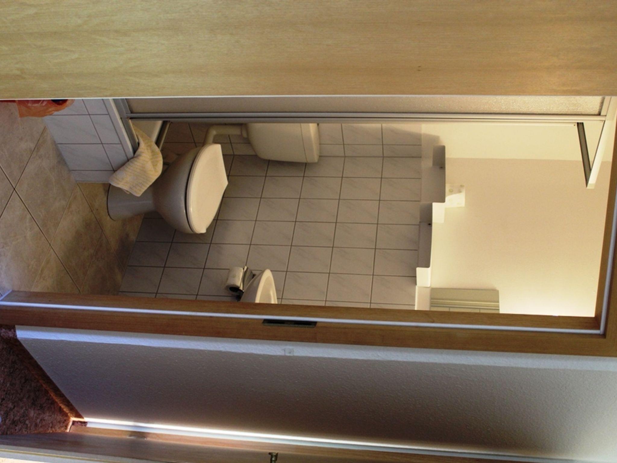 Gemütliche Doppelzimmer mit kleinem Bad (Du/WC). Große Dachfenster sorgen für ausreichend Tageslicht.