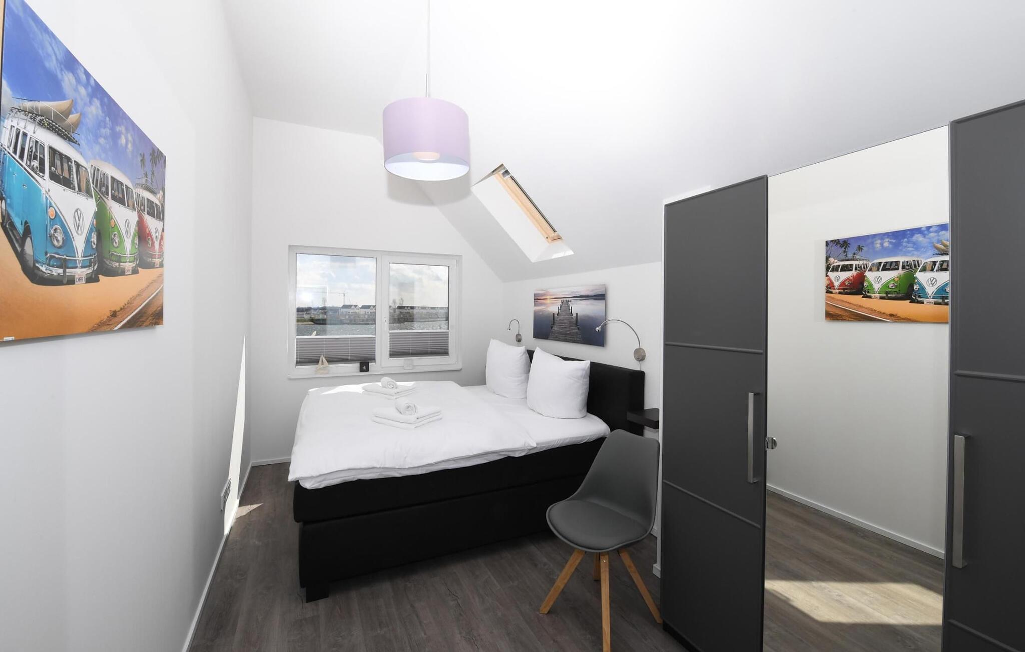 Ferielejlighedens drømmeland er på andet niveau. Det store soveværelse har en fantastisk udsigt over havnen og er udstyret med en højkvalitets boxmadras. Fald i søvn under stjernerne, et ovenlys giver jer ikke kun mulighed for at se stjernehimlen, men også de drømmeagtige skyformationer, der er så karakteristiske for norden. Det andet soveværelse byder på to enkeltsenge og en enestående udsigt over Schleien, de første sejlbåde kan ses tidligt om morgenen!