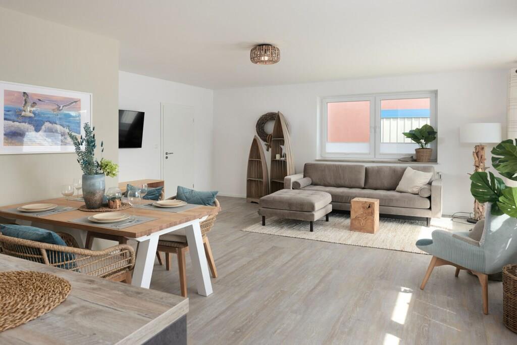Welcome to "Strandoase," one of our four stylistically distinct Art-Partments vacation apartments. This cozy, bright, and newly furnished Art-Partments apartment is themed around the artwork of artist Sabine Körner. It is accessible without steps and has its own separate entrance. The apartment features two bedrooms with double beds (180x200 cm), two smart TVs, a spacious bathroom with a walk-in shower and integrated washer/dryer, and a generous central living and dining area with a high-quality, fully equipped kitchen and a large dining table. Comfortable seating provides direct access to the furnished terrace, which includes a beach chair. Private parking is available directly at the apartment. A separate utility room contains a vacuum cleaner, clothes dryer, iron, cleaning supplies, and a first-aid kit. For more information, please visit https://art-partments-laboe.de/strandoase