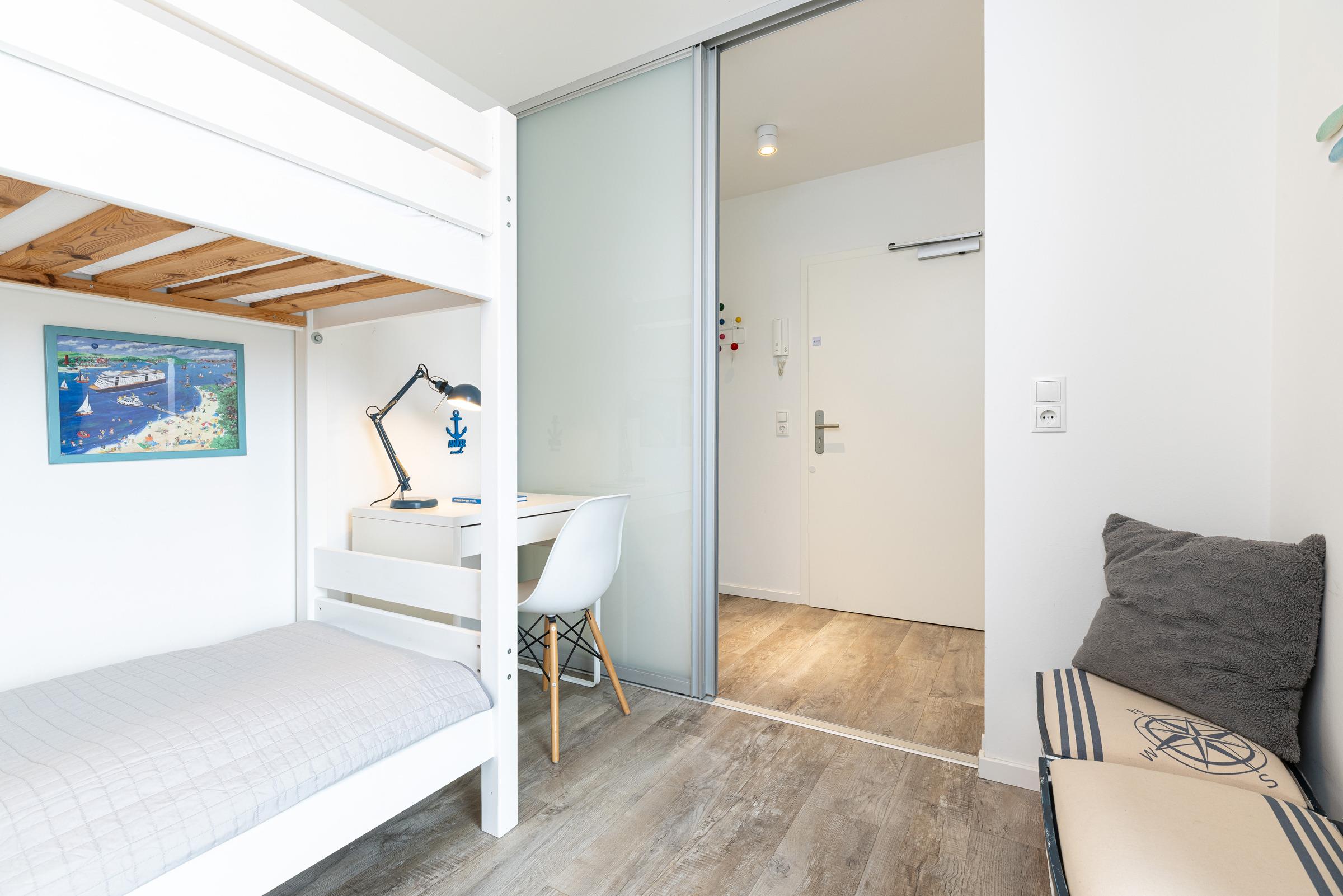 Schlafzimmer 2: 1 Etagenbett (2x 80x200 cm), Kleiderschrank, Verdunkelung: Gardinen