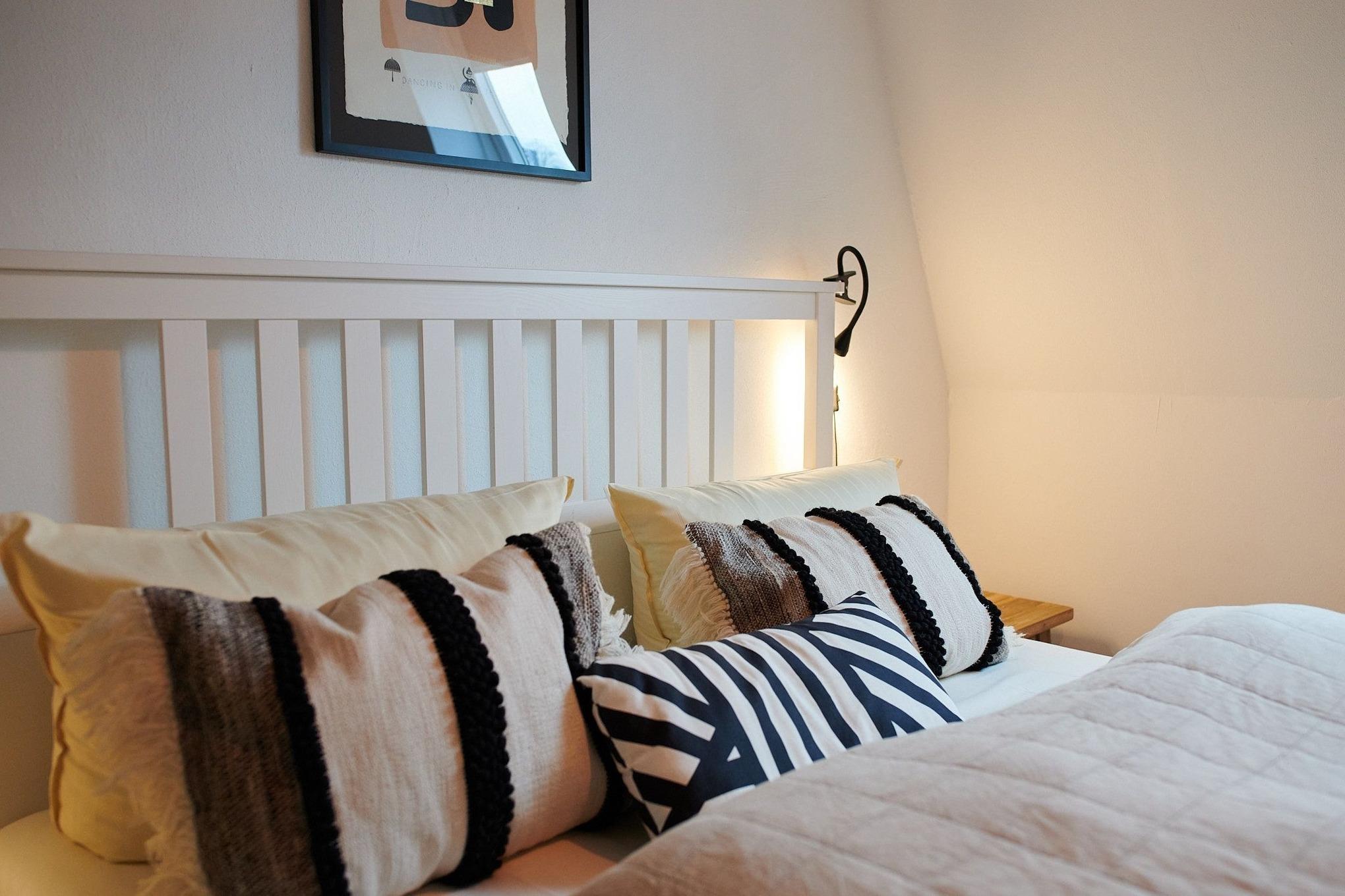Stilvollen 4-Zimmer-Ferienwohnung für bis zu 6 Personen im Dachgeschoss (2 Stock) mit großem Balkon im Traditionshaus Alte Bäckerei im Herzen von Laboe.