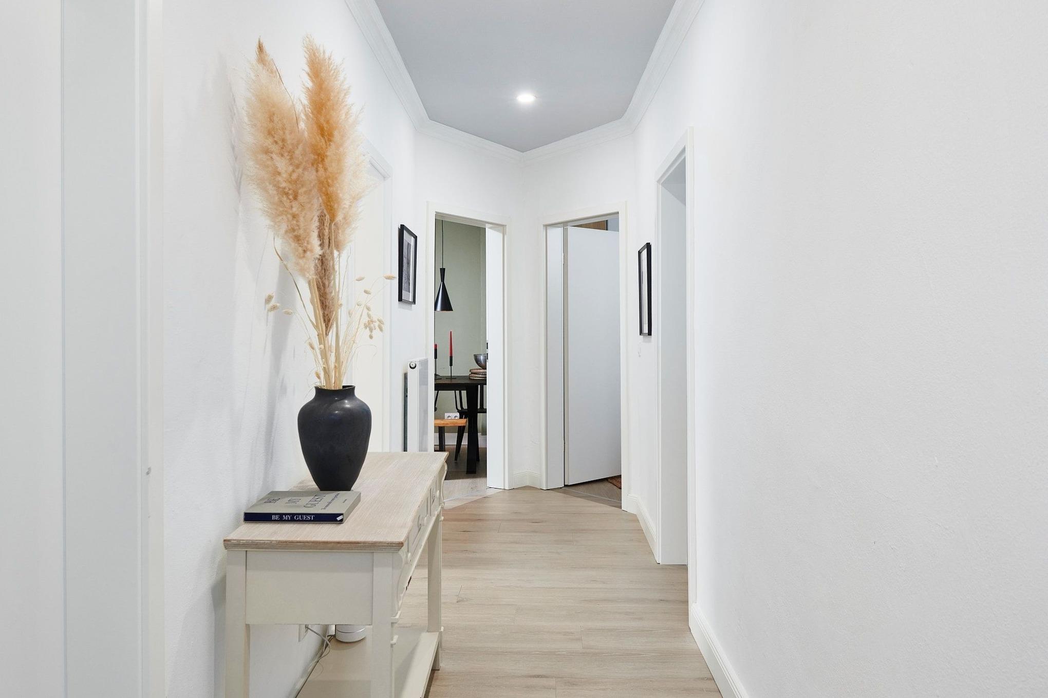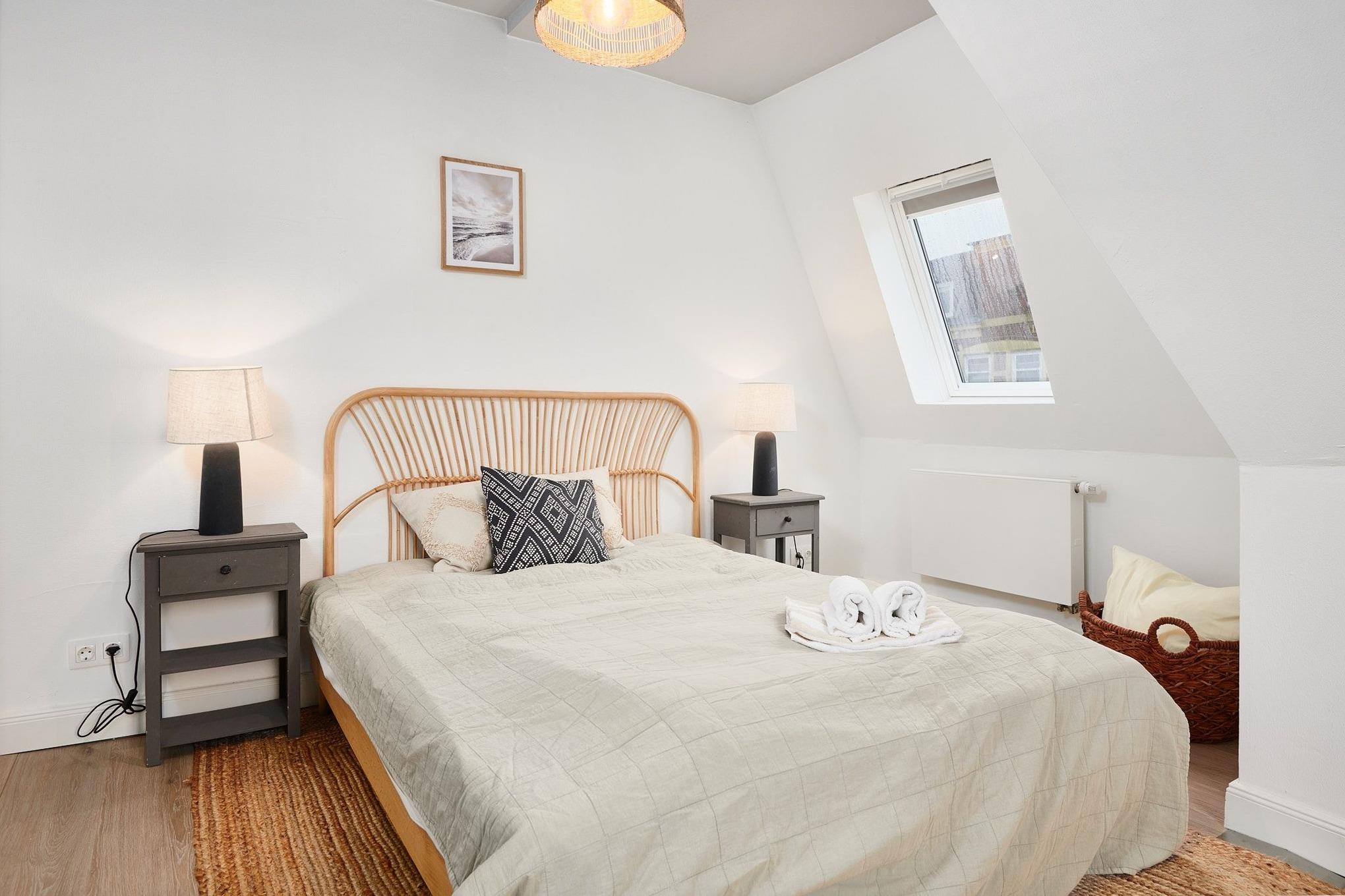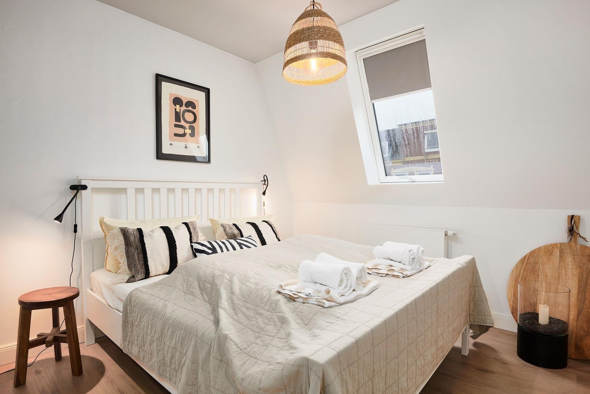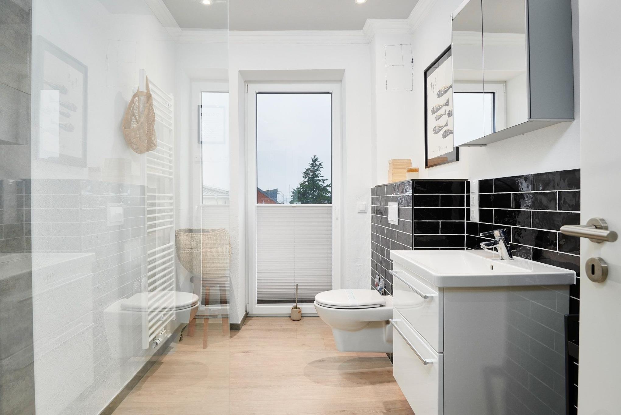Herzlich willkommen im Urlaub! Freuen Sie sich auf den Charme eines Altbaus mit hohen Decken und Dielen sowie lichtdurchfluteten Zimmern. Die Wohnung verfügt über eine geschmackvoll eingerichtete Wohn-/Esszimmer-Kombination mit moderner Küche, die Lounge-Charakter aufweist und zum Verweilen einlädt. Ob zum Gespräch, zum Essen, zum Fernsehen, zum Kochen oder einfach zum Chillen - alles ist hier möglich. Und wer seine Ruhe möchte, zieht sich zurück auf den mit fast 20 m² riesigen Balkon, der eher einer Dachterrasse gleicht und zwischen den Häusern hindurch sogar einen Blick bis zum Hafen bietet. Neben den komfortablen Möbeln, die den Charme des Altbaus bekräftigen, glänzt die Wohnung durch die technische Ausstattung: Zwei große Smart-TV Geräte sind mit Netflix, Amazon Prime etc. ausgestattet und über Google Home (dem Gegenstück zu Alexa) können Sie per Stimme jederzeit Radio und Musik abspielen lassen. Die drei Schlafzimmer, in denen jeweils ein Doppelbett steht, versprechen erholsame Nächte mit bunten Träumen. Das tageslichthelle Badezimmer ist modern eingerichtet und punktet mit der ebenerdigen Dusche, von der Sie aus nach draußen auf den Balkon blicken können. Diesen können Sie sowohl vom Bad als auch von der Küche aus betreten.