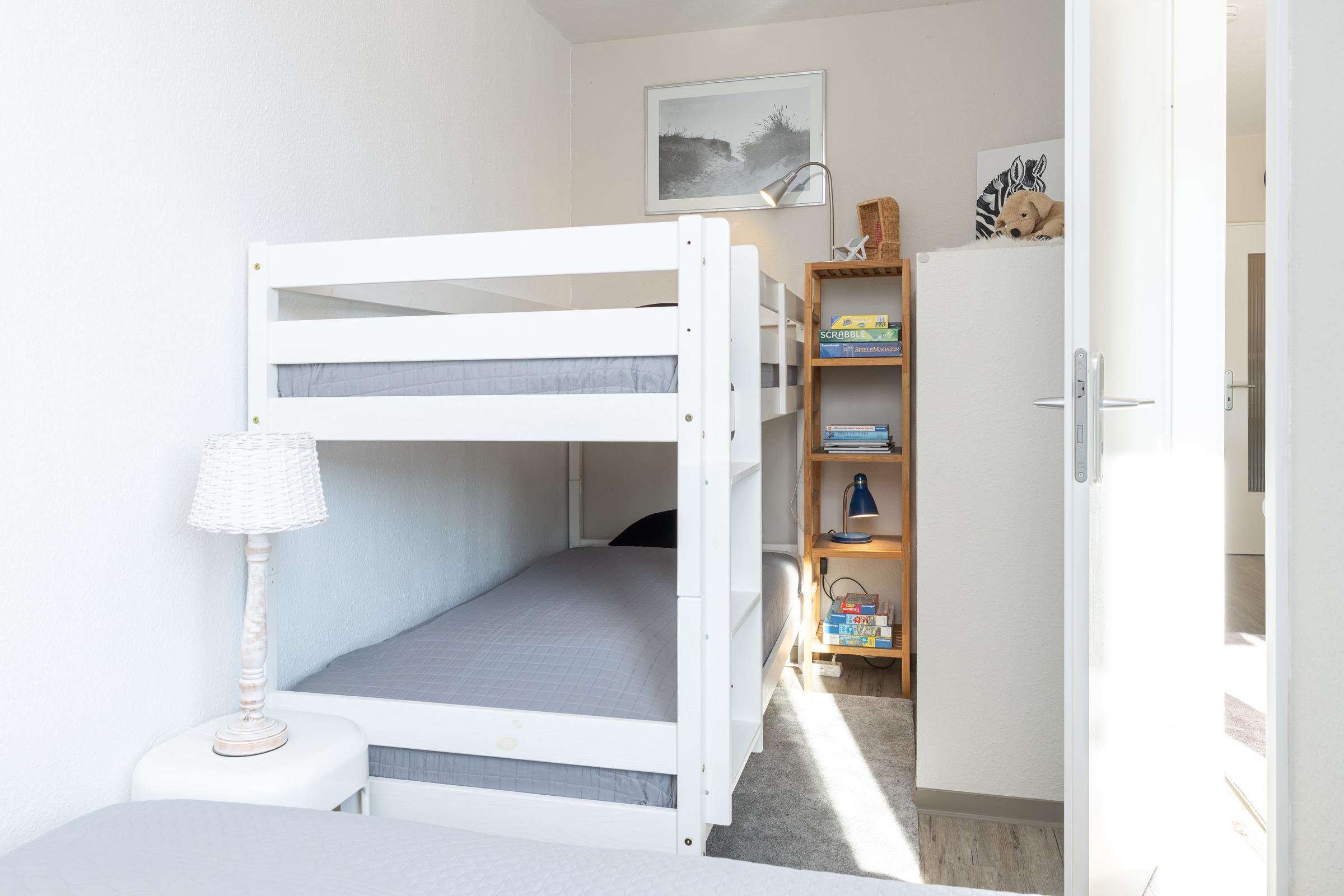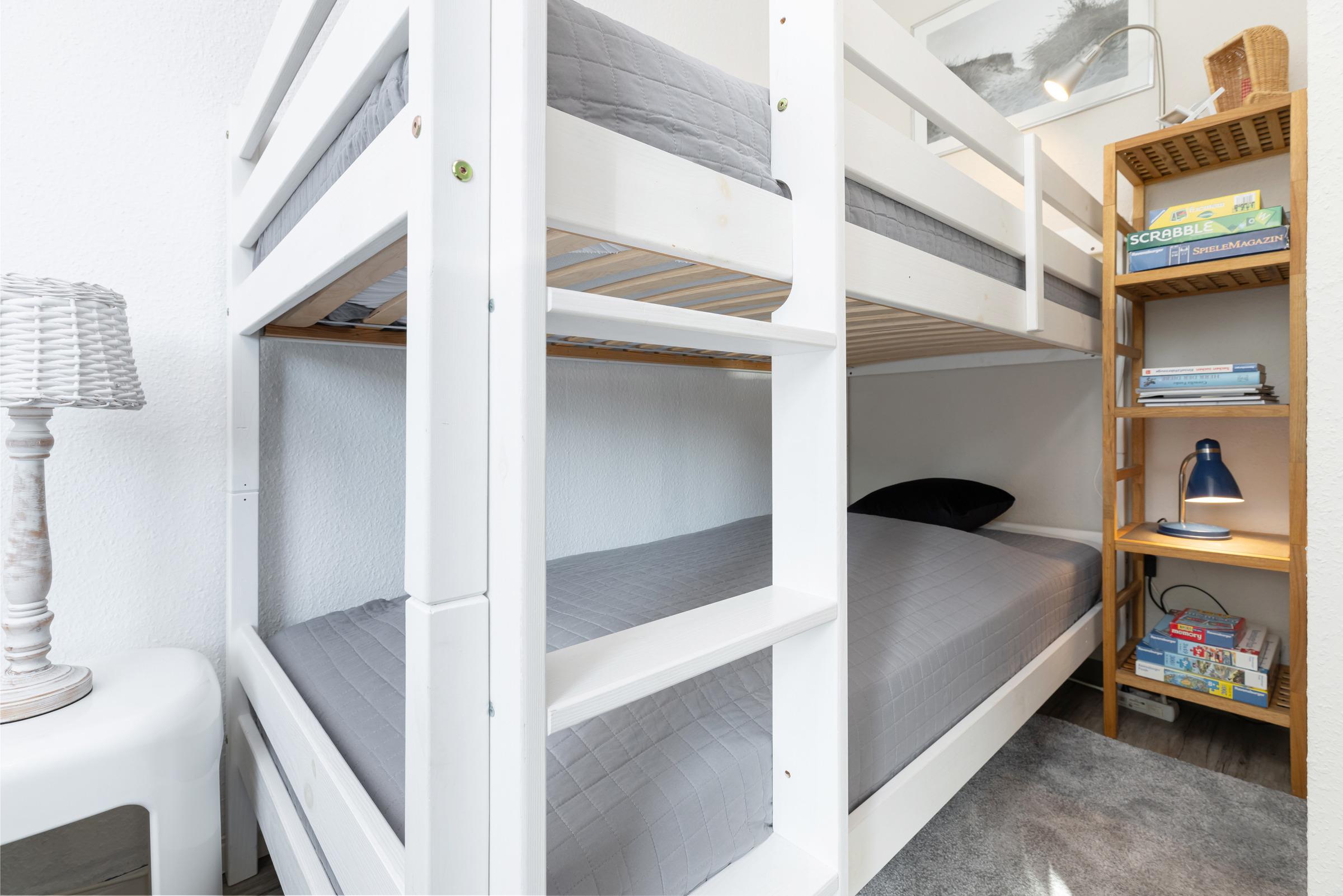 Schlafzimmer: Doppelbett (2x 80x200 cm), Etagenbett für 2 Kinder, Kommode